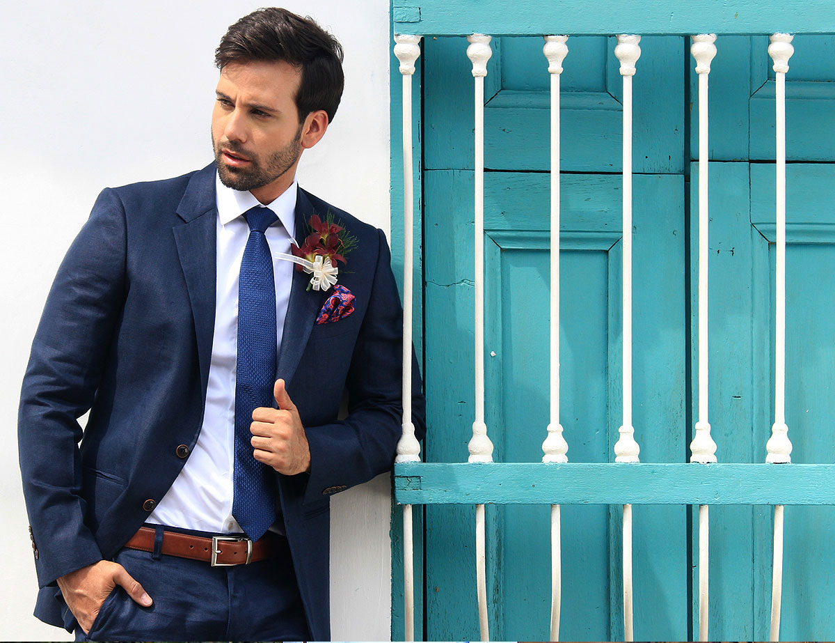 El éxito de un buen traje de novio es elegir la tela indicada para la ocasión, en complemento con detalles como la selección de las mancornas, corbata o corbatín, el color de la camisa, el color del chaleco, el estilo de los zapatos, entre muchos otros.