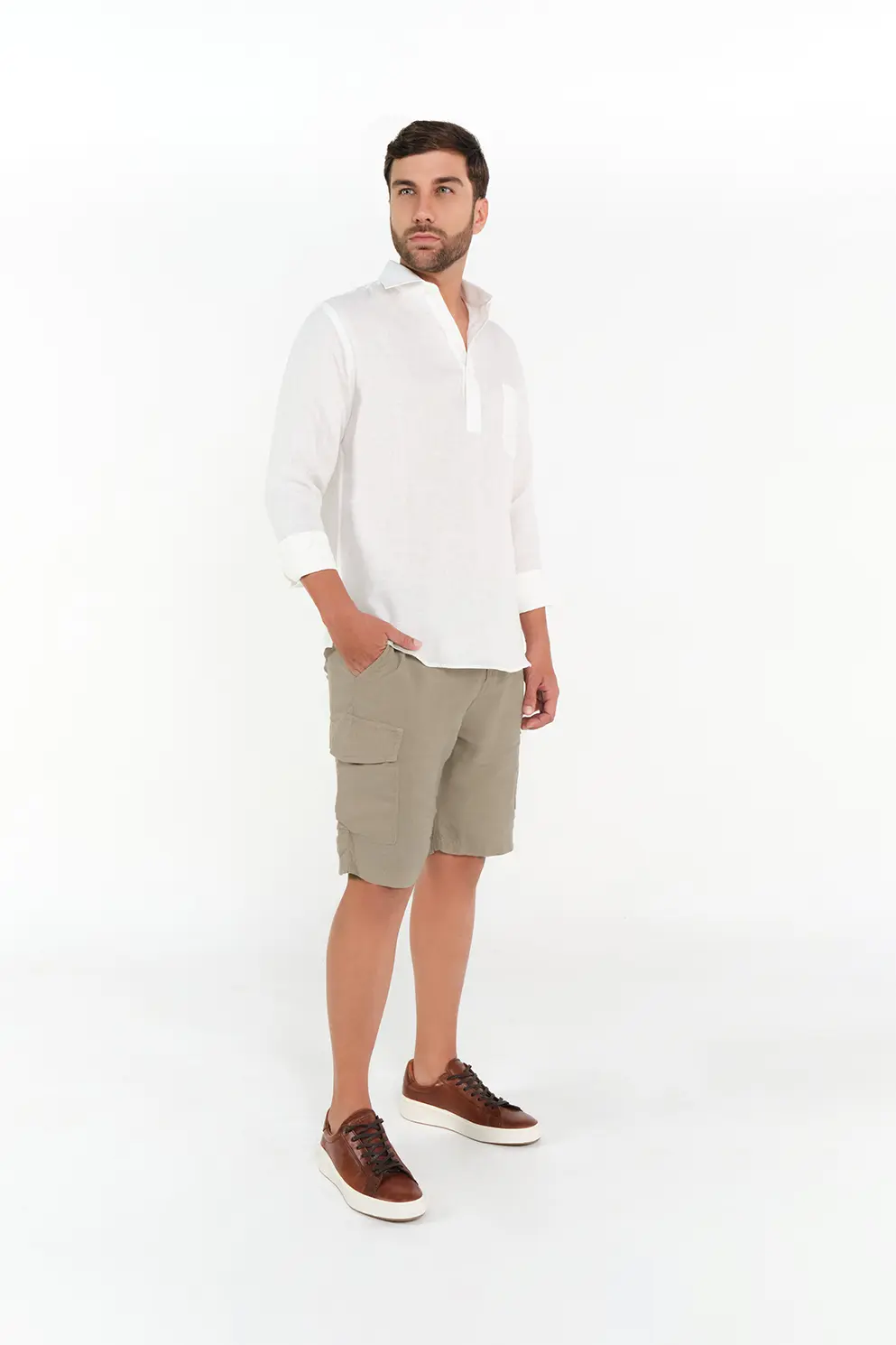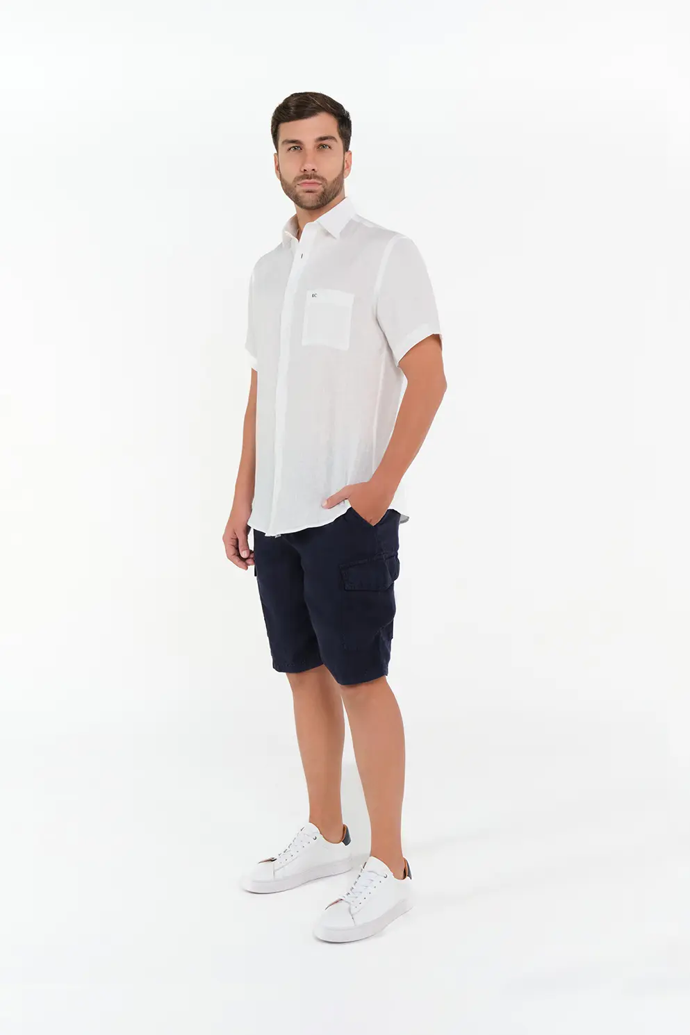 BERMUDA 100% LINO - CORTE SLIM FIT - DOS BOLSILLOS LATERALES - DOS BOLSILLOS DOBLE RIBETE CON BOTON EN LA PARTE POSTERIOR