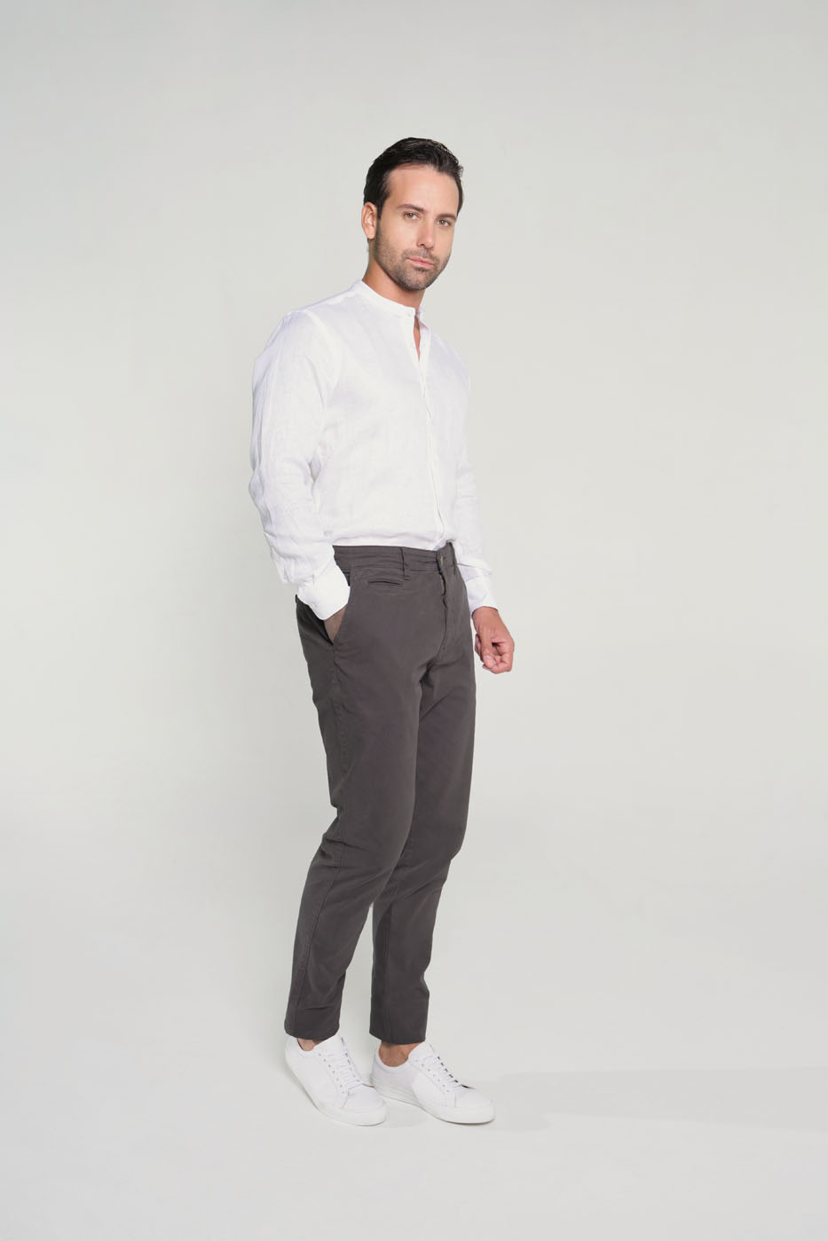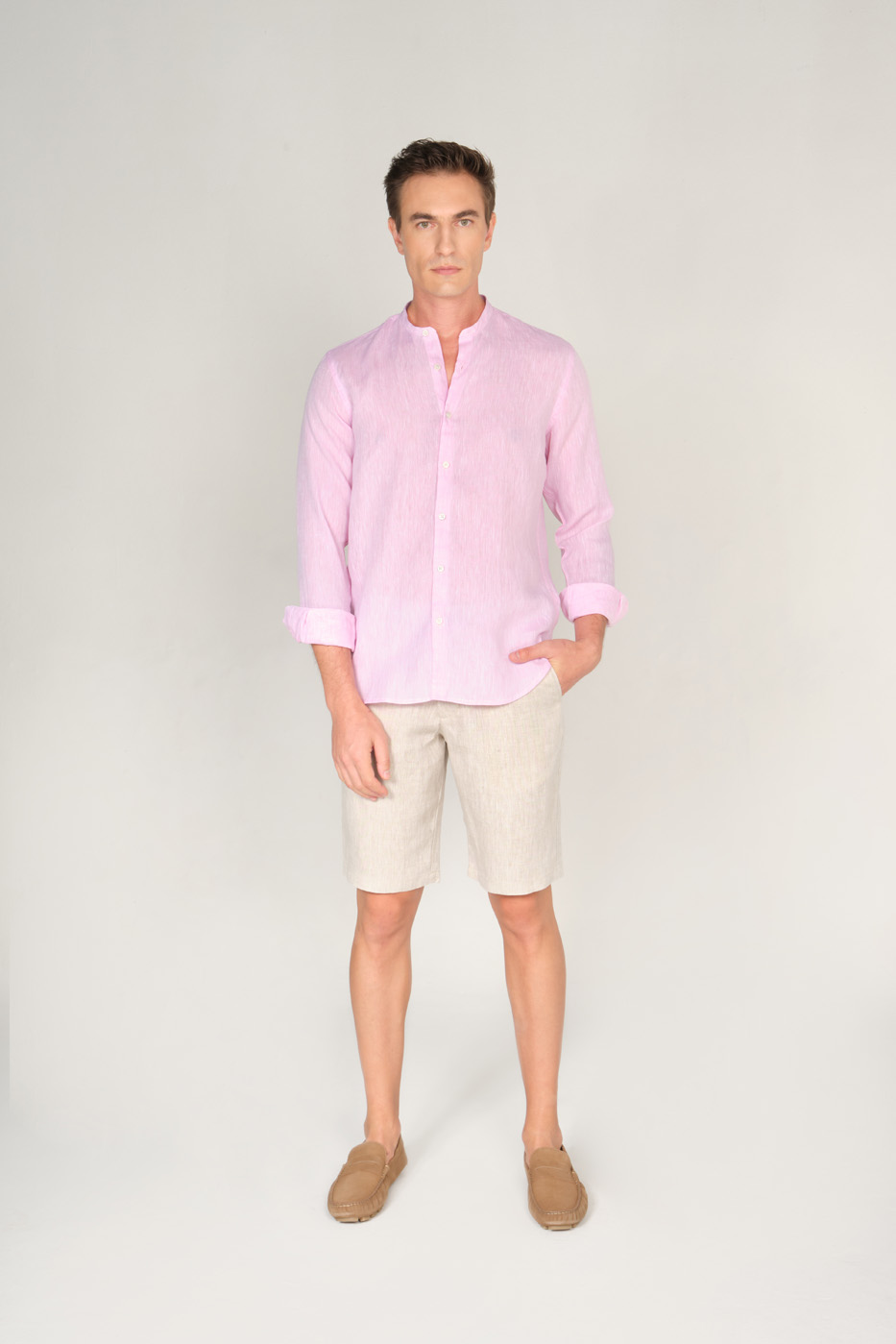 Camisa confeccionada con tejido 100% lino. Corte Classic fit: este fit ofrece comodidad con un poco más de holgura en el torso y los brazos aportando un estilo clásico pero relajado. Manga larga con puño abotonado. Cuello nerú. Cierre mediante botonadura frontal de 4 botones. Un bolsillo ribete a la altura del pecho.