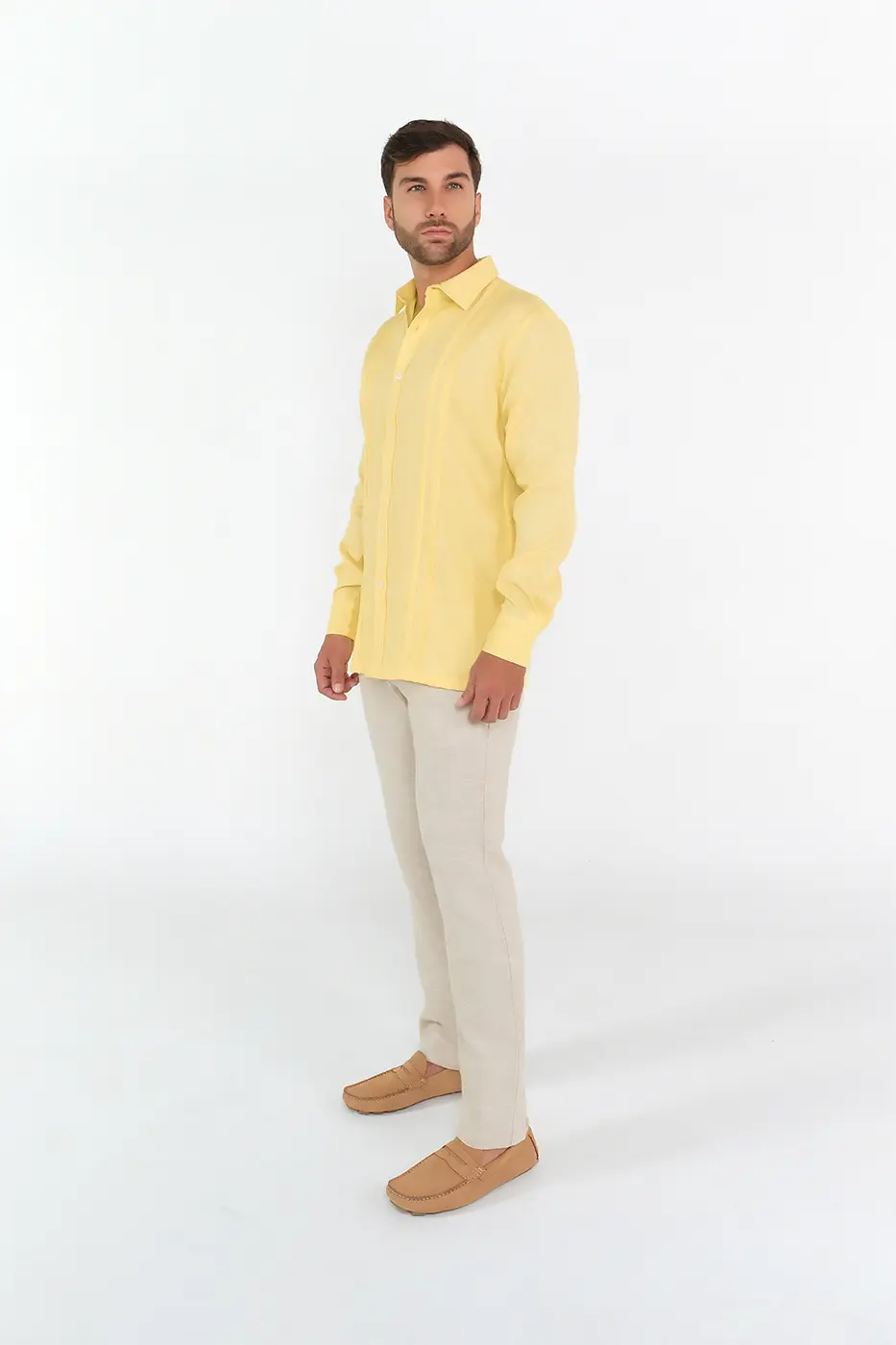 Guayabera Formal. 100% Lino. Classic Fit. Alforzada. Manga Larga. Puño abotonado. Cierre mediante botones.