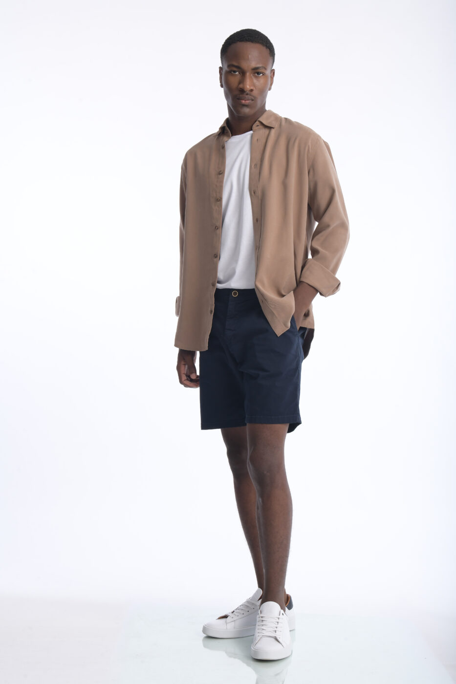 Bermuda para hombre en drill (97% algodón, 3% spandex), con corte slim fit y tejido ligeramente elástico. Diseño cómodo, fresco y versátil con bolsillos laterales y posteriores.