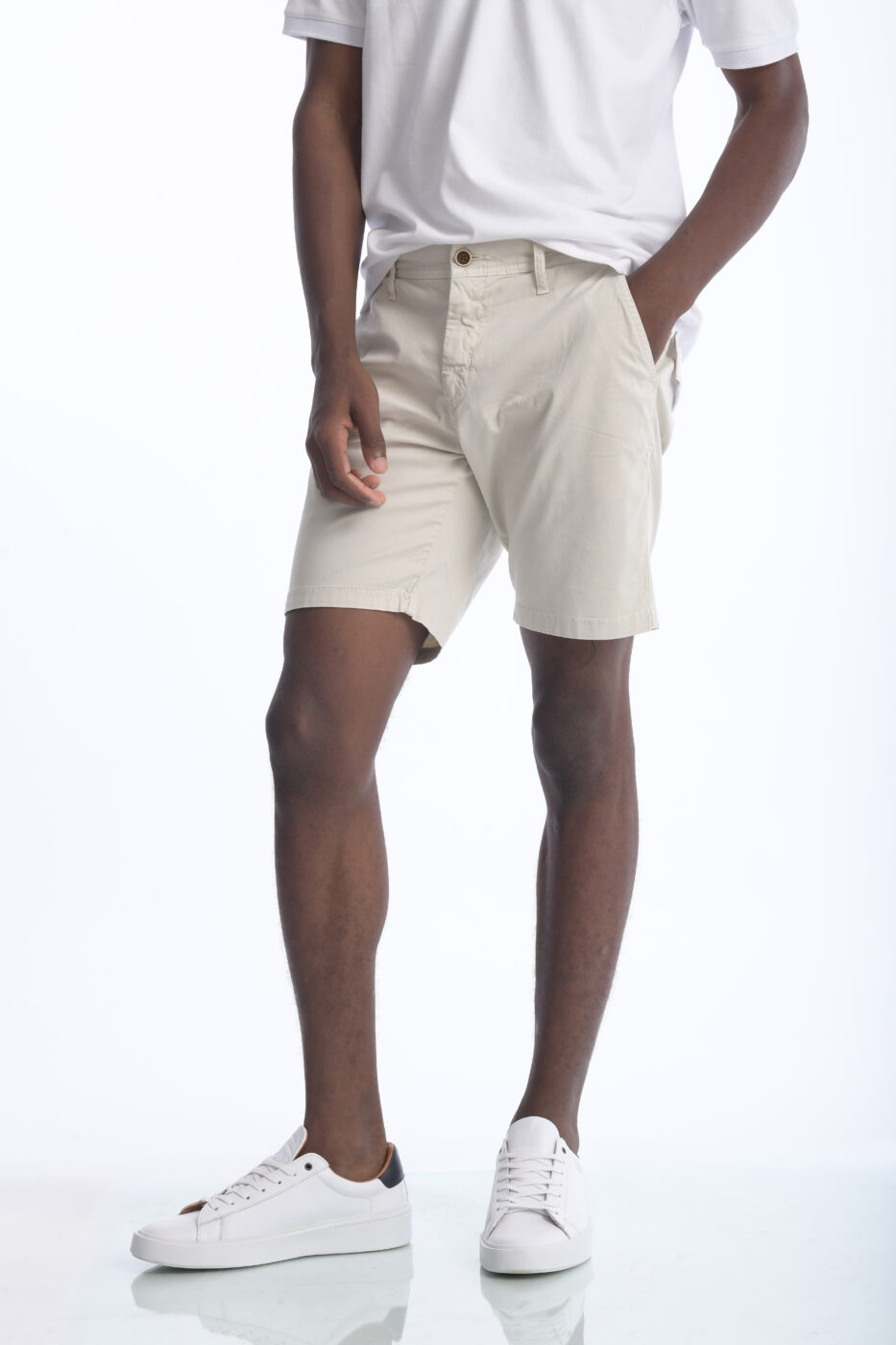 Bermuda para hombre en drill (97% algodón, 3% spandex), con corte slim fit y tejido ligeramente elástico. Diseño cómodo, fresco y versátil con bolsillos laterales y posteriores.