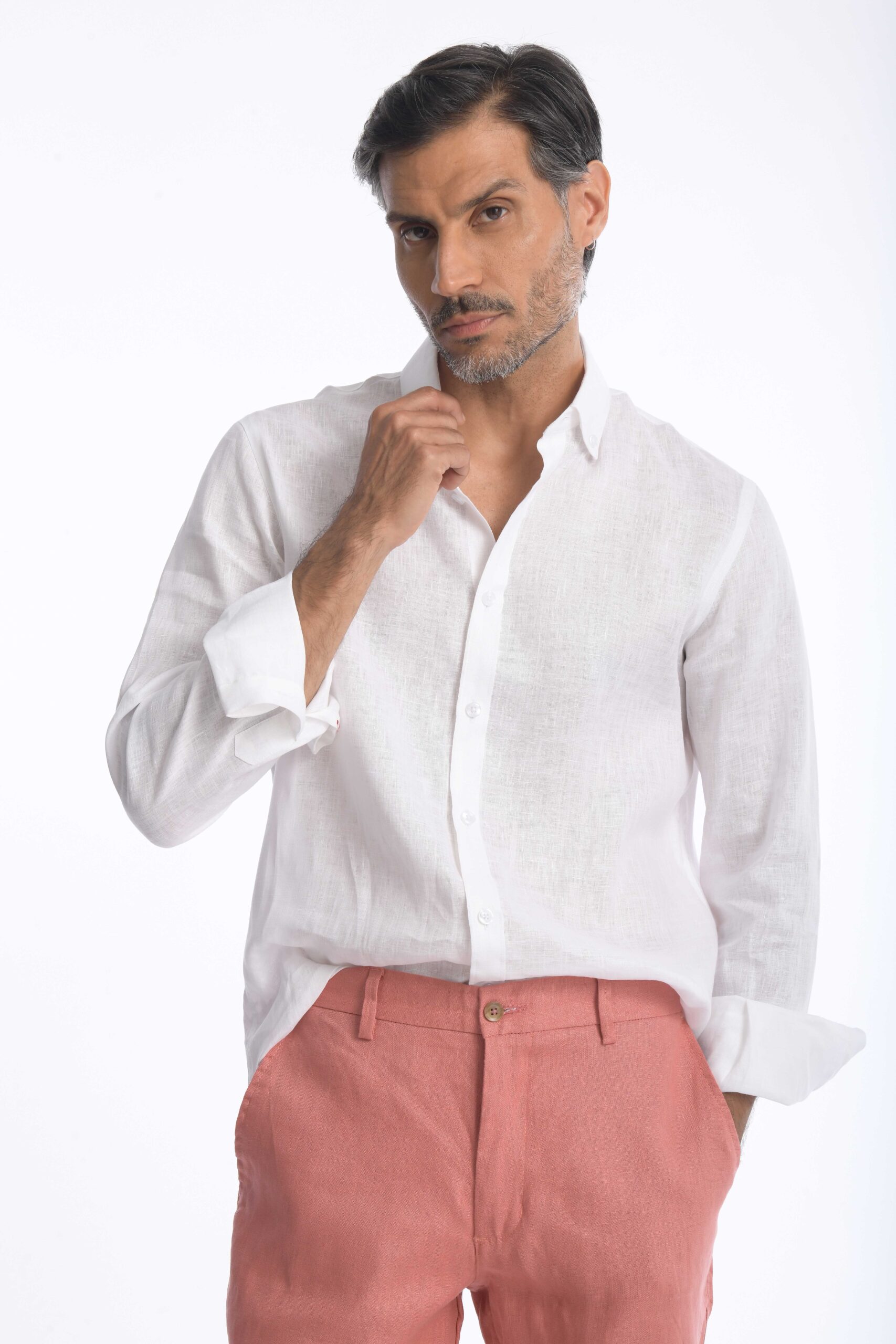El lino, reconocido por su ligereza y transpirabilidad, la convierte en una prenda perfecta para climas cálidos. Incorpora bolsillos laterales funcionales y bolsillos posteriores de doble ribete, aportando un acabado limpio y elegante.