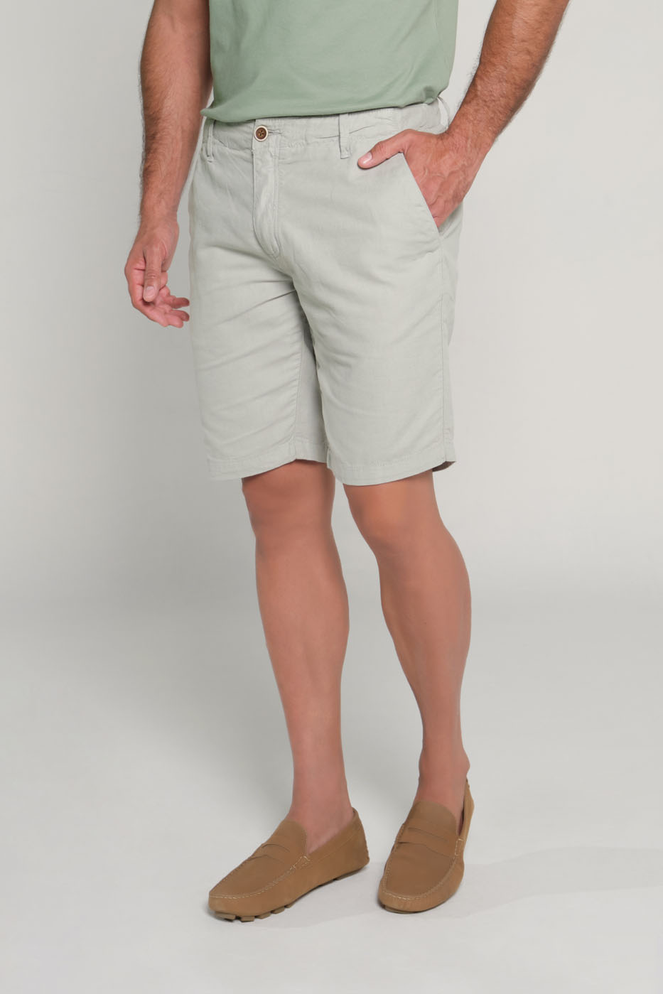 BERMUDA 100% LINO – CORTE SLIM FIT – DOS BOLSILLOS LATERALES – DOS BOLSILLOS DOBLE RIBETE CON BOTON EN LA PARTE POSTERIOR