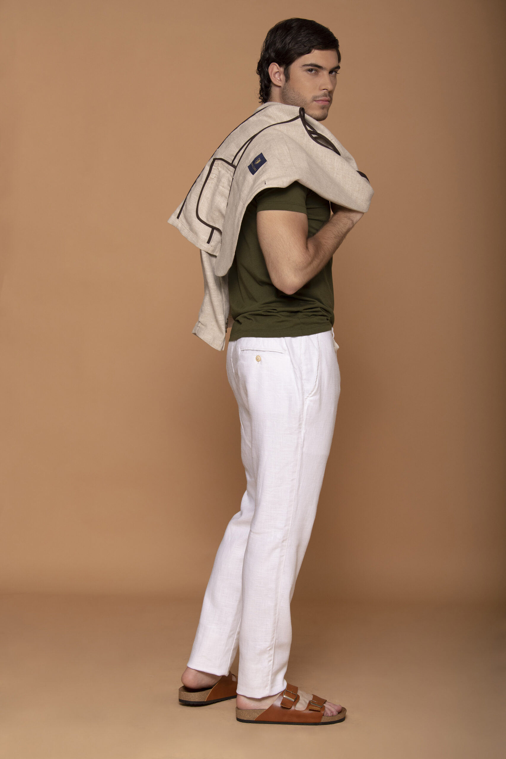 Blazer confeccionada con tejido 100% lino. Solapa clásica y ojal. Bolsillo doble ribete en la parte frontal. Cierre delantero con botones. Puños de tira abotonada. Una abertura posterior. Bolsillo interior. Sin forro interior.