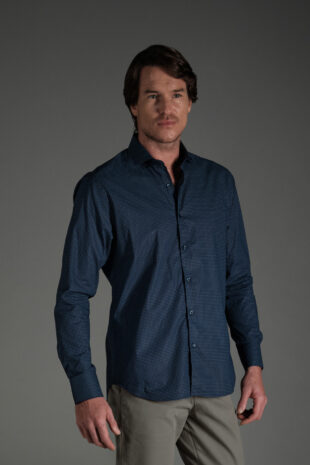 Camisa Casual Classic Algodon Azul Navy Mini Print