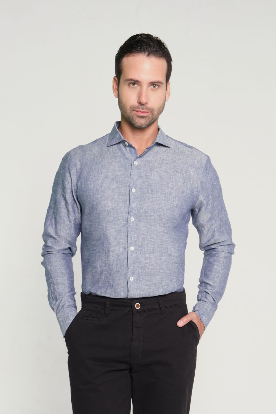 Camisa Classic Lino Azul Gris