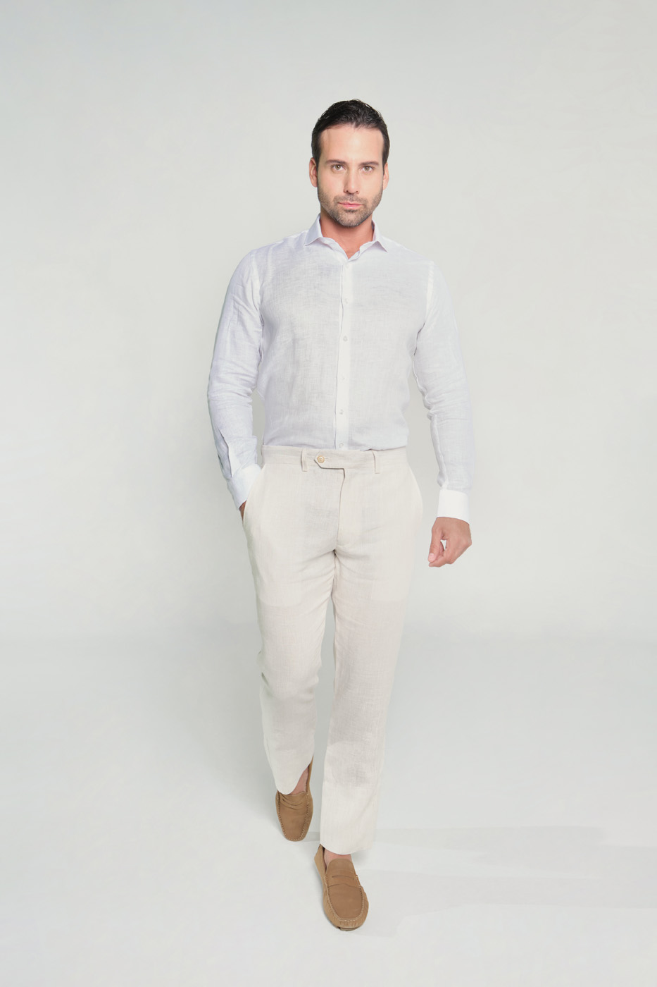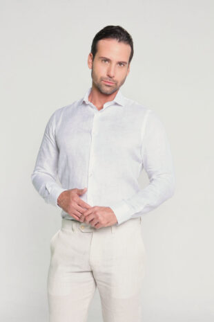 Camisa Formal. 100% Lino. Slim Fit. Manga Larga. Puño abotonado. Cierre mediante botones.
