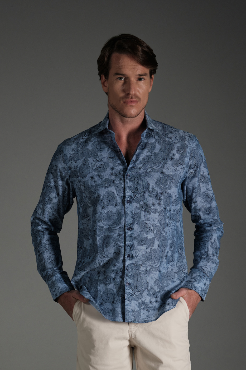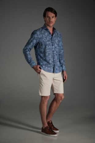 Camisa Classic Lino Flores Azul Navy