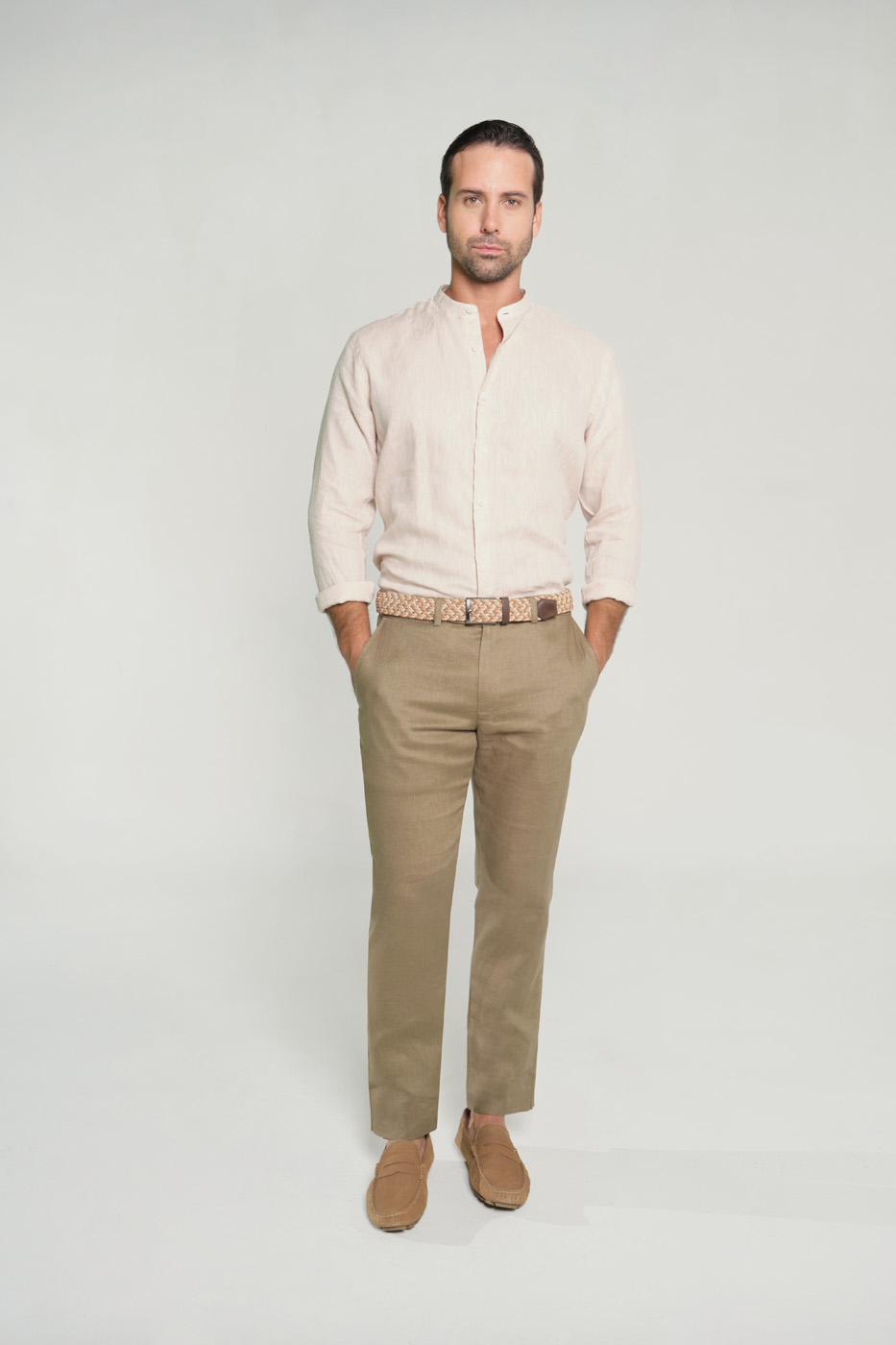 Camisa 100% Lino – Corte Classic Fit – Cierre Mediante Botones – Cuello Nerú – Puño Abotonado Redondo