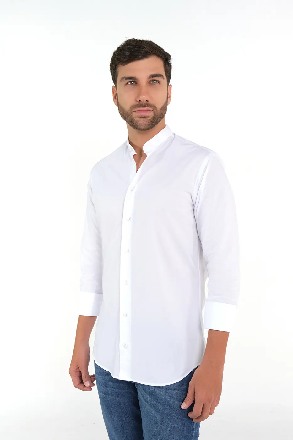 Camisa Casual. 100% Algodón. Slim Fit. Manga Larga. Puño abotonado. Cierre mediante botones. Cuello Nerú.