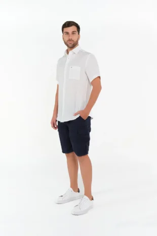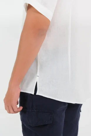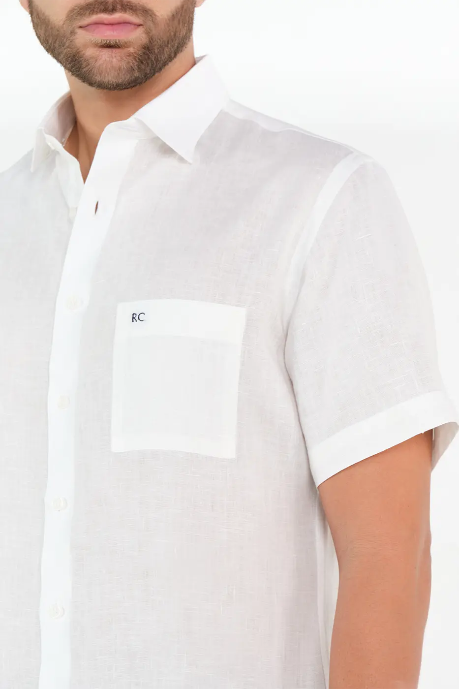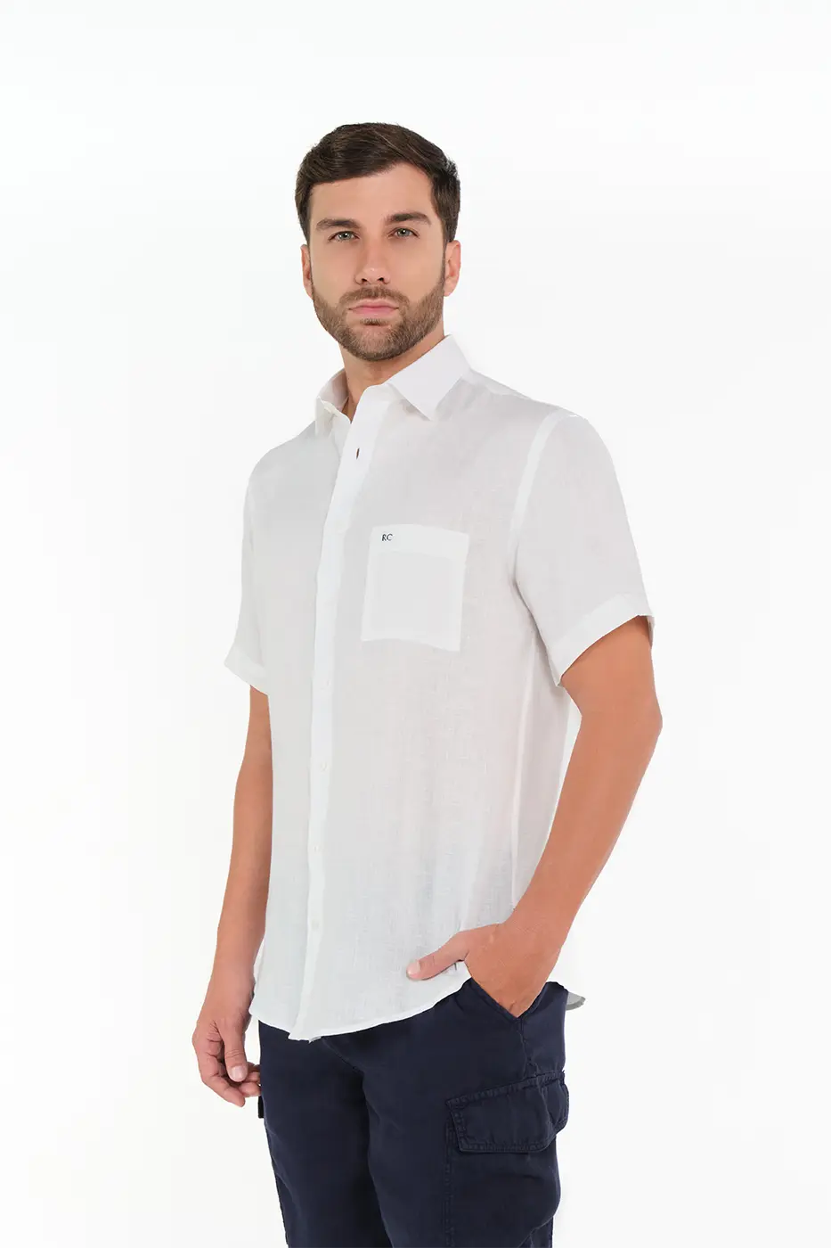 Camisa Manga Corta Slim Fit 100% Lino Blanco