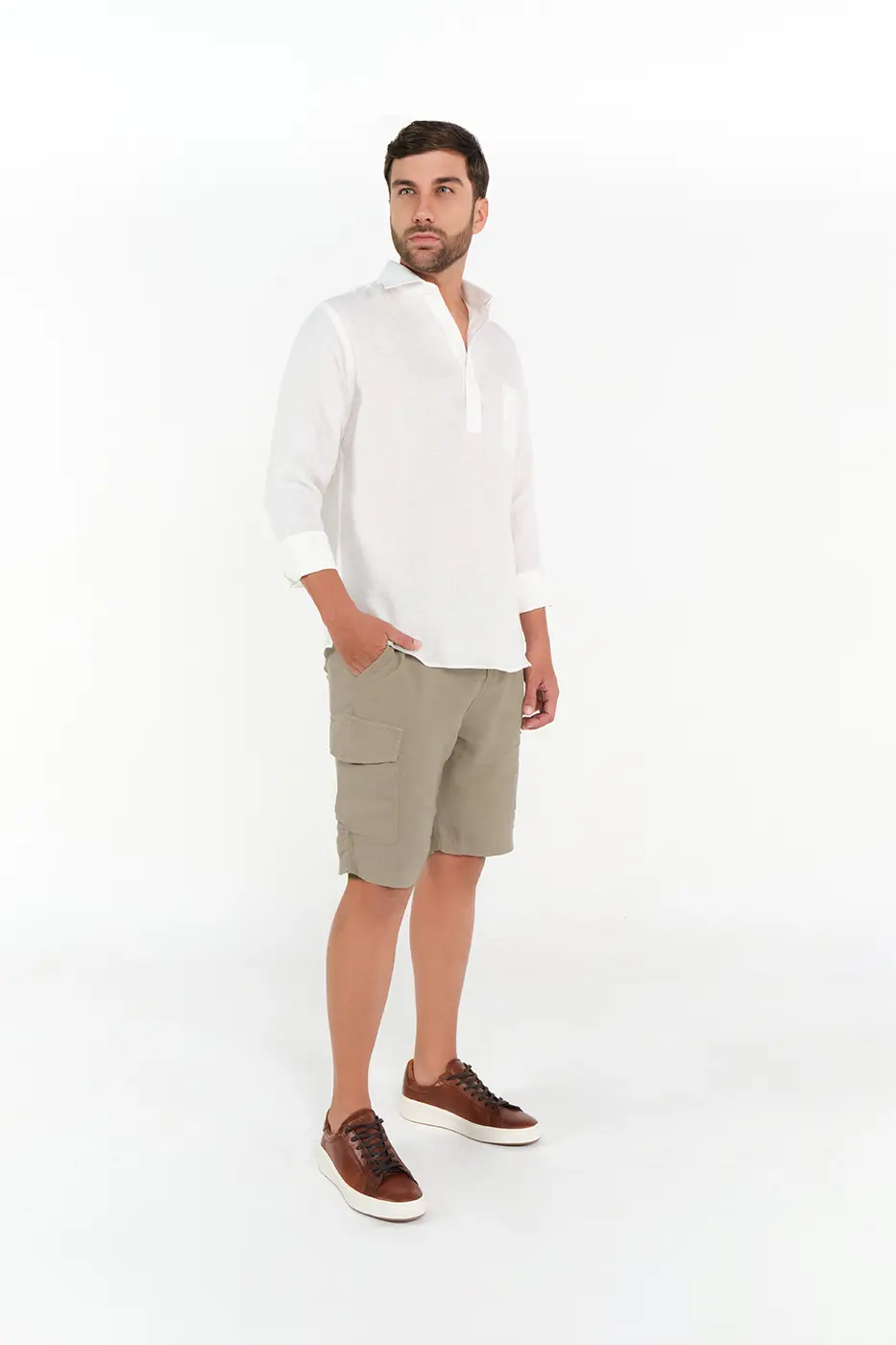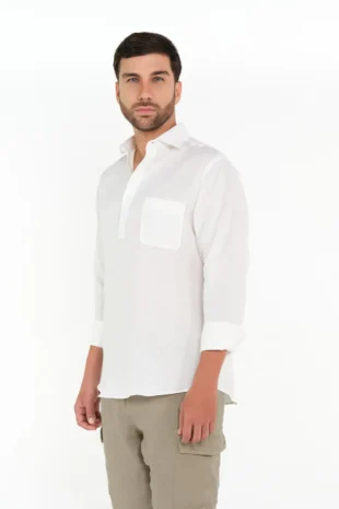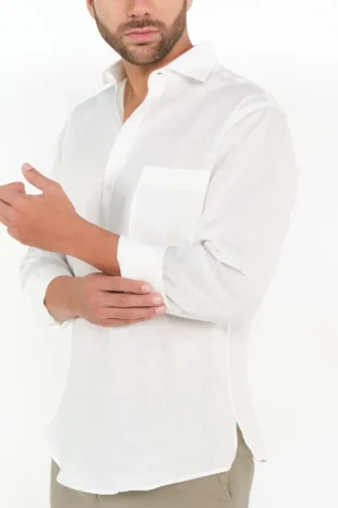 Camisa Media Cartera Classic Fit 100% Lino Blanco