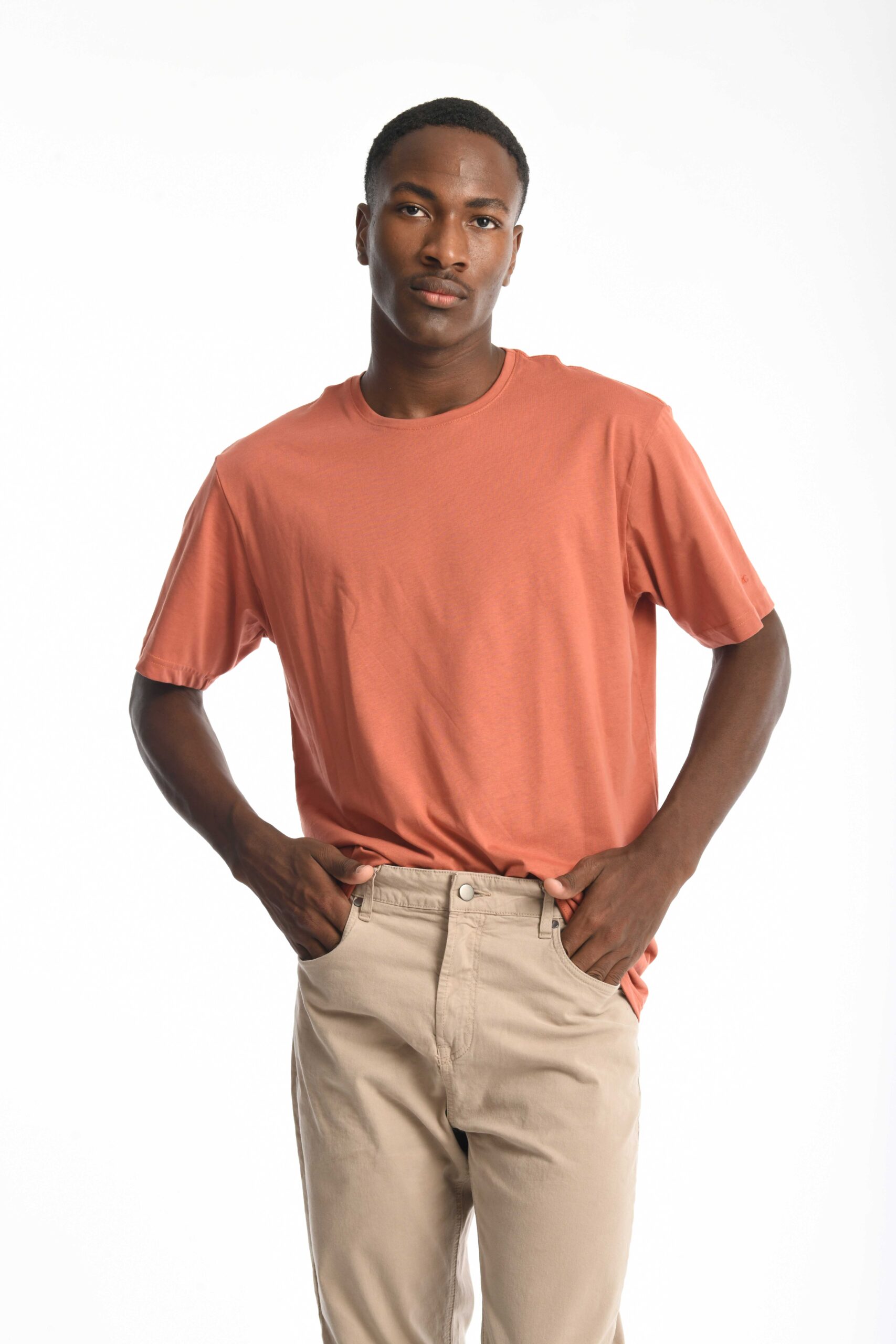 Su corte slim fit se adapta al cuerpo resaltando la silueta, mientras que el diseño de cuello redondo y manga corta aporta un acabado limpio y versátil. Perfecta para crear looks casuales con un toque moderno, fácil de combinar en cualquier ocasión.