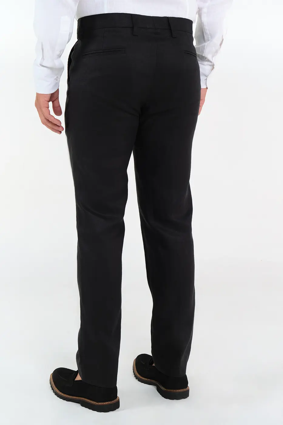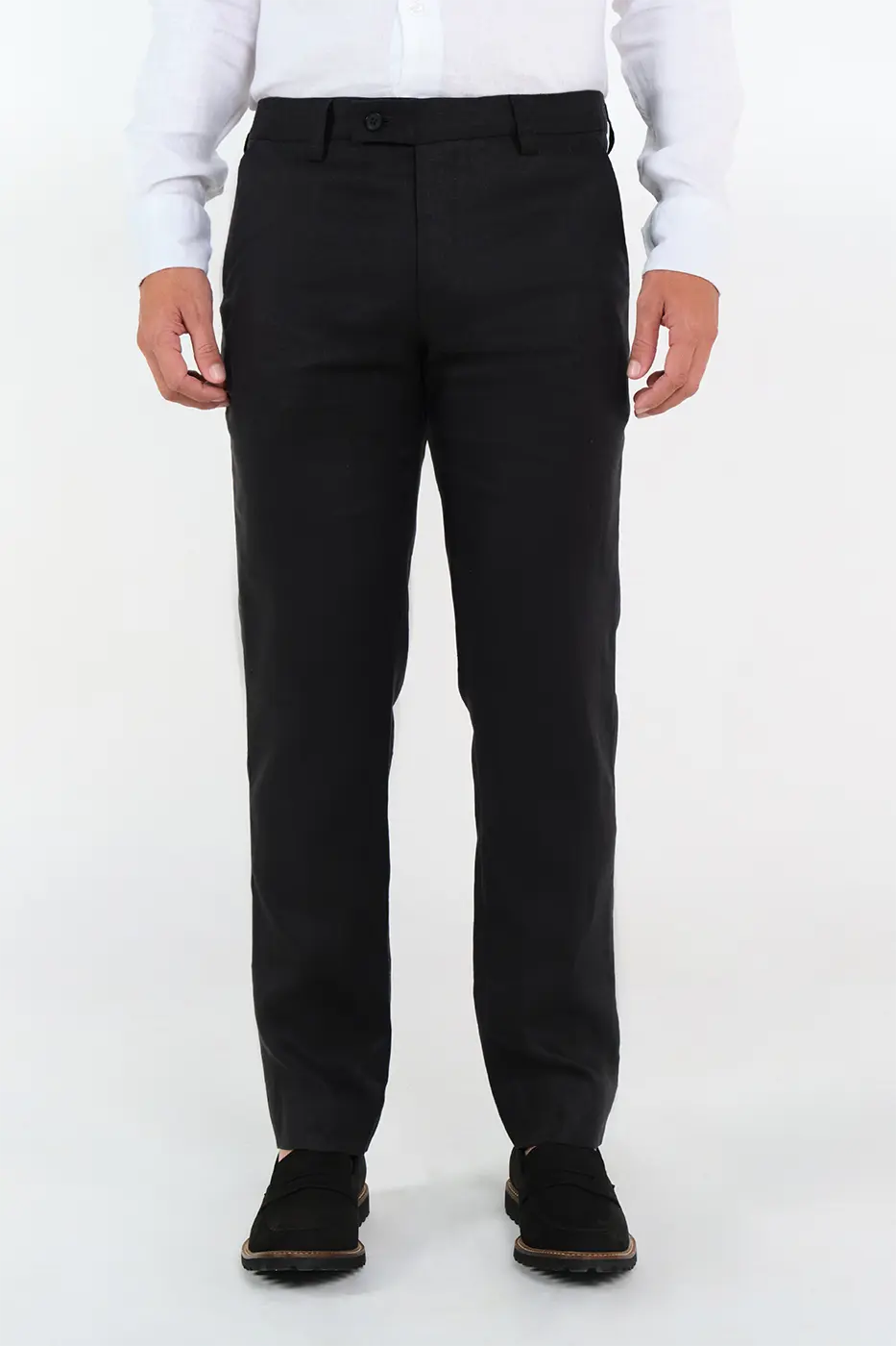 Pantalón Formal. 100% Lino. Slim Fit. Diseño Pretina Cruzada Con Botón y Pasadores. Bolsillos Delanteros Diagonales. Bolsillos Traseros Doble Ribete.