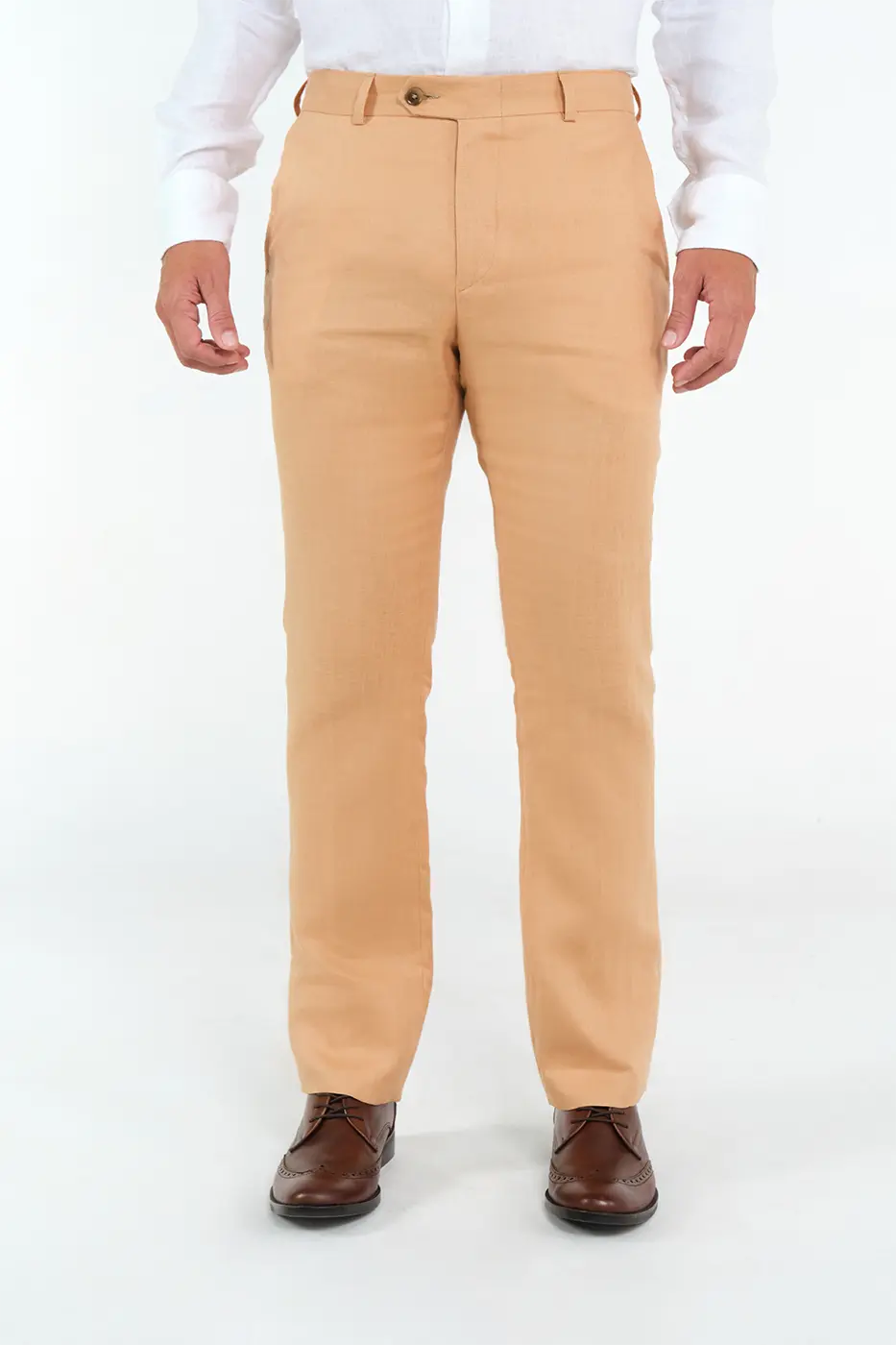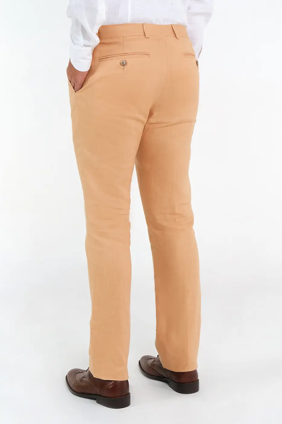 Pantalón Formal. 100% Lino. Slim Fit. Diseño Pretina Cruzada Con Botón y Pasadores. Bolsillos Delanteros Diagonales. Bolsillos Traseros Doble Ribete Con Botón