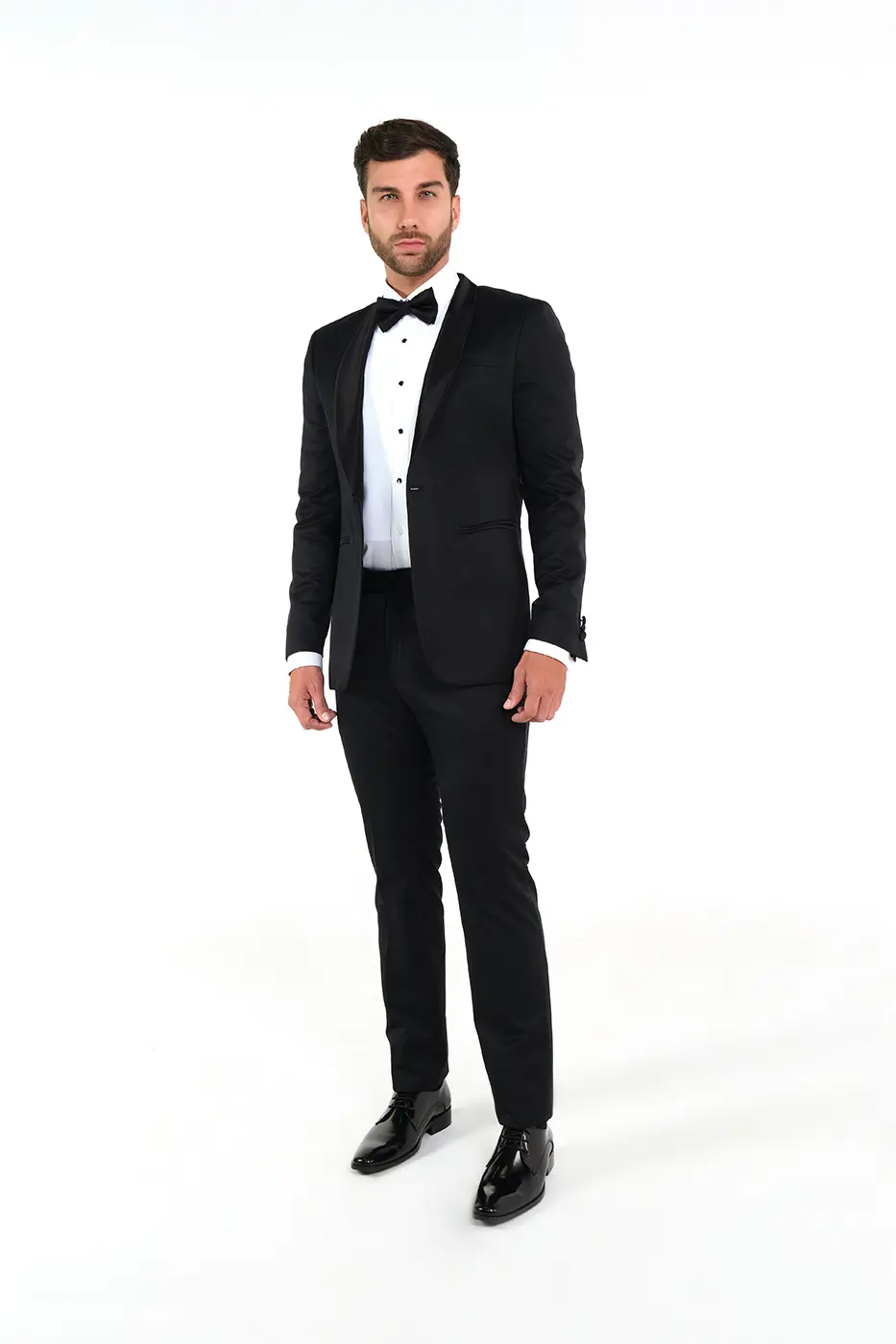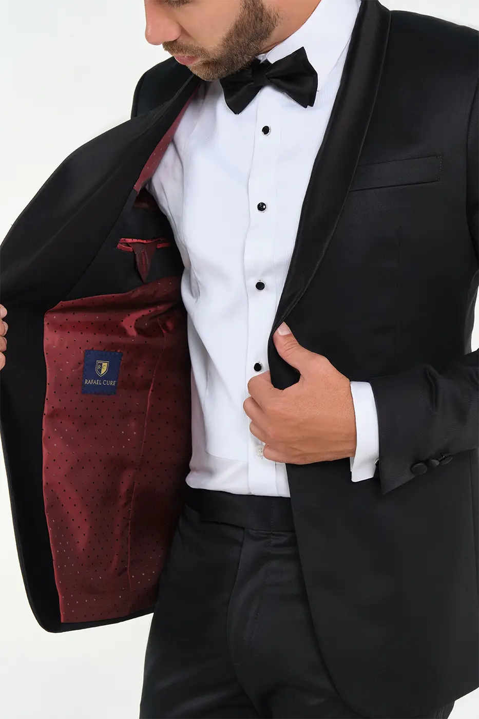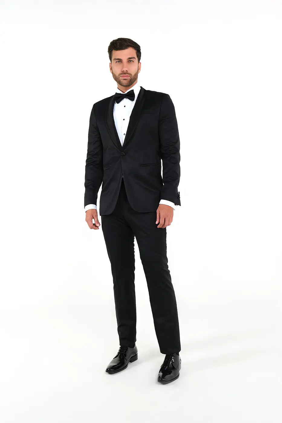 Chaqueta Gala. Paño. Slim Fit. Diseño Solapa Shawl Satinada. Bolsillos Delanteros Doble Ribete Satinados. Un Botón Delantero Satinado. Sin Aberturas.