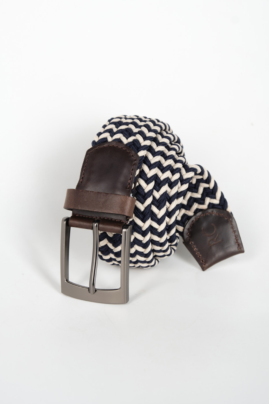 Correa Casual – Hilo Trenzado Resortado – Colores en Contraste – Hebilla Metalica – Remates en Cuero
