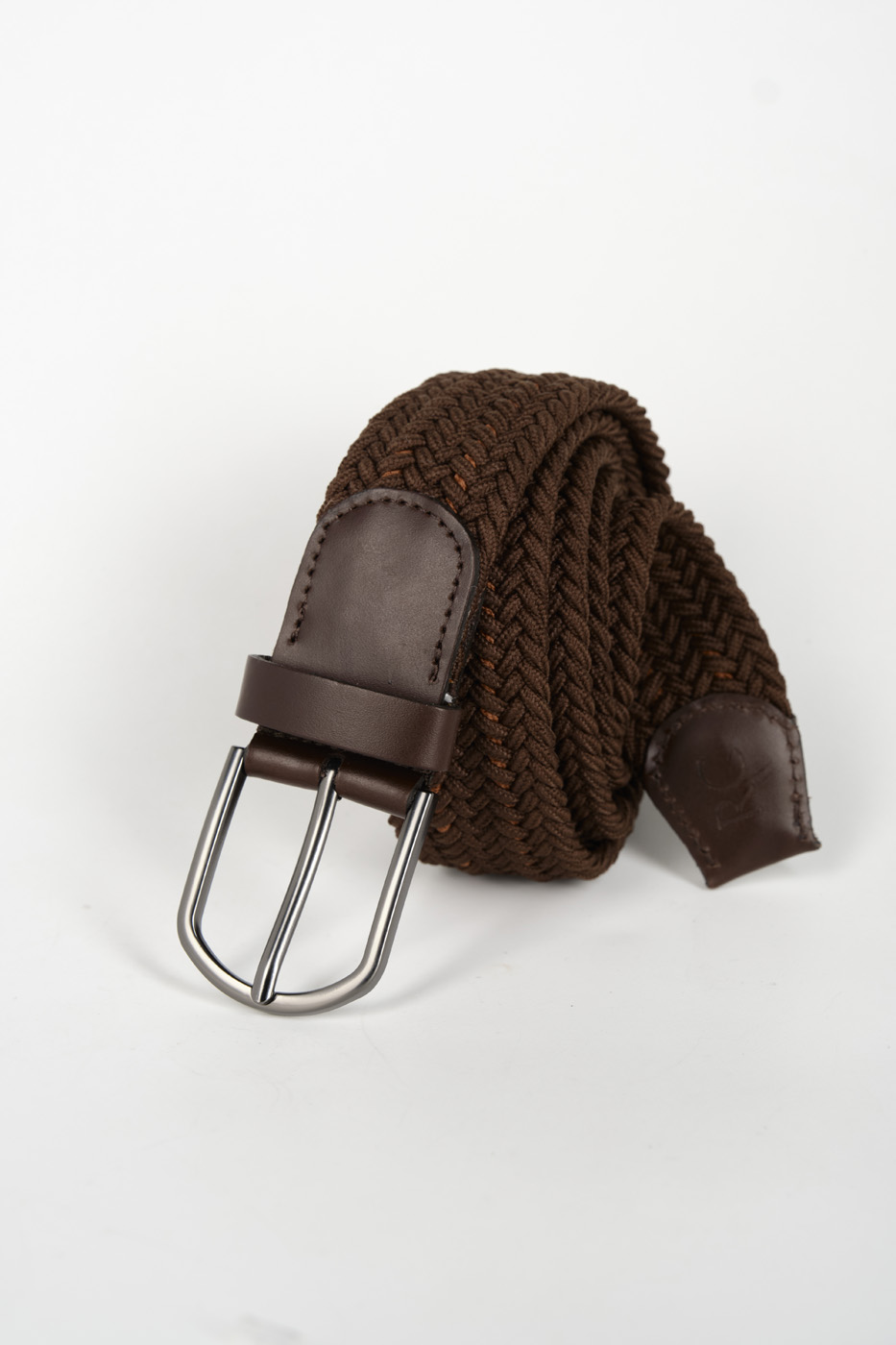 Correa Casual – Hilo Trenzado Resortado – Hebilla Metalica – Remates en Cuero – Dos Hilos Naranjas
