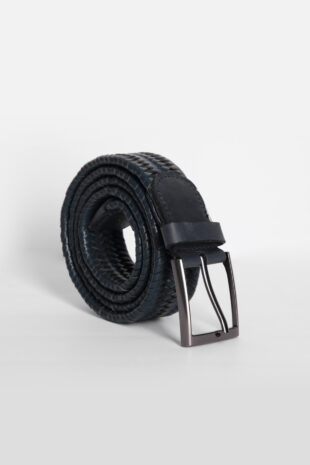 Correa Casual Cuero Trenzado Azul Turqui- Hebilla Metalica – 100 % Cuero