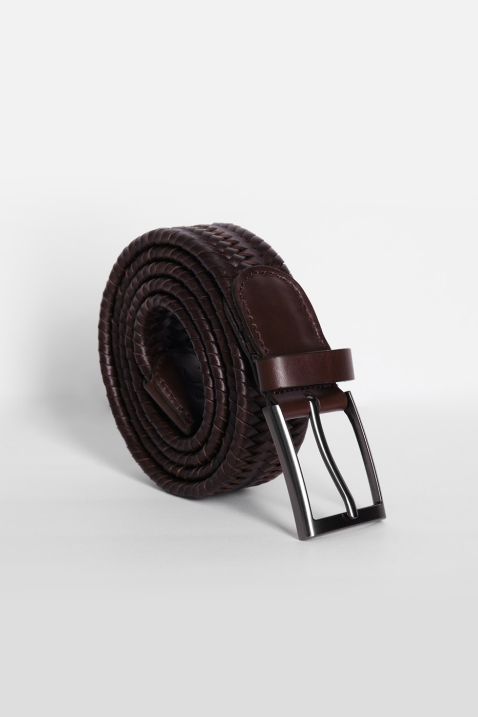 Correa Casual Cuero Trenzado Cafe Oscuro – Hebilla Metalica – 100 % Cuero