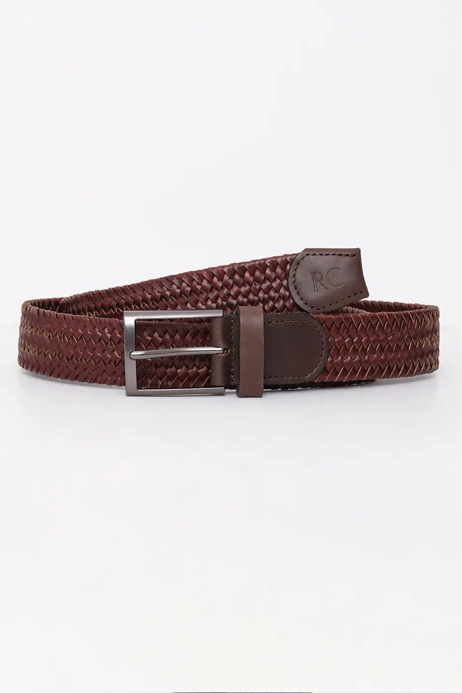 Correa Casual. Cuero Trenzado. Hebilla Metalica. Remates en Cuero.