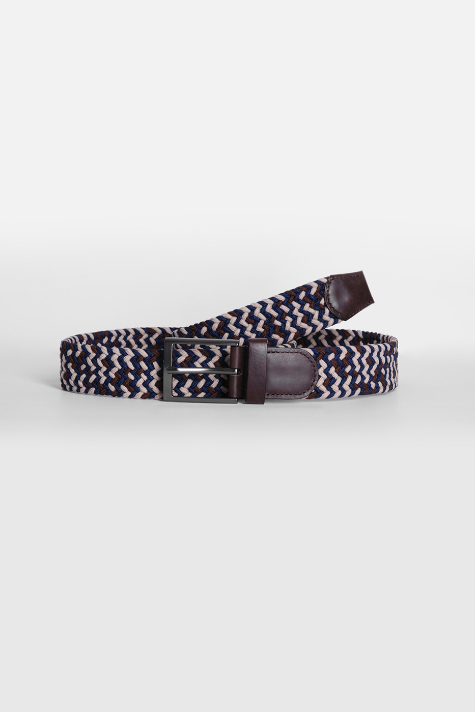 Correa Casual Hilo Trenzada Resortada Azul Oscuro Mix – Hebilla Metalica – Remates En Cuero