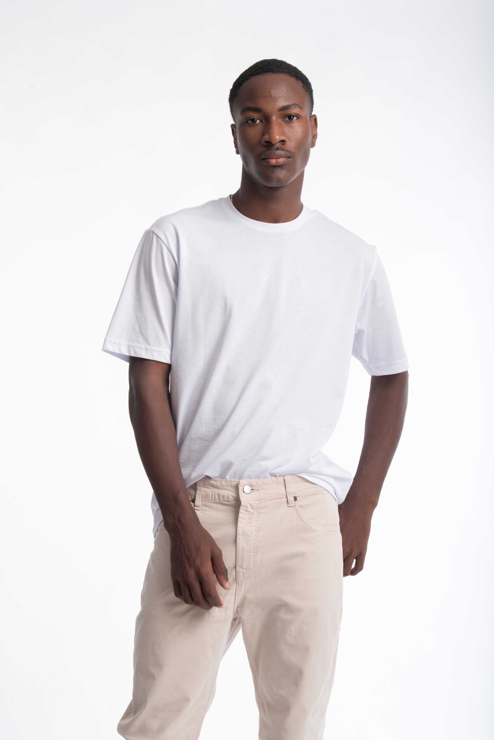Camiseta para hombre en 100% algodón, suave, fresca y altamente transpirable. Corte slim fit que se adapta al cuerpo, realza la silueta y brinda comodidad durante todo el día. Ligera, de secado rápido y fácil de combinar, con cuello redondo y manga corta, ideal para looks modernos, versátiles y de uso diario.