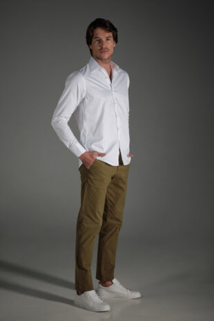 Pantalón 100% Algodón Twill – Corte Slim – Tejido Lijeramente Elastico – Dos Bolsillos Laterales – Dos Bolsillos De Ojal Abotonado En La Parte Posterior