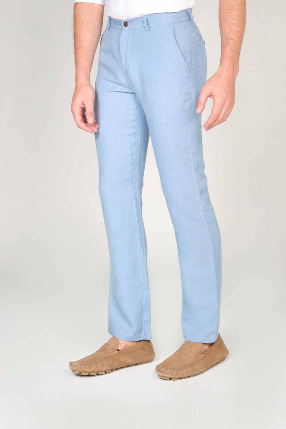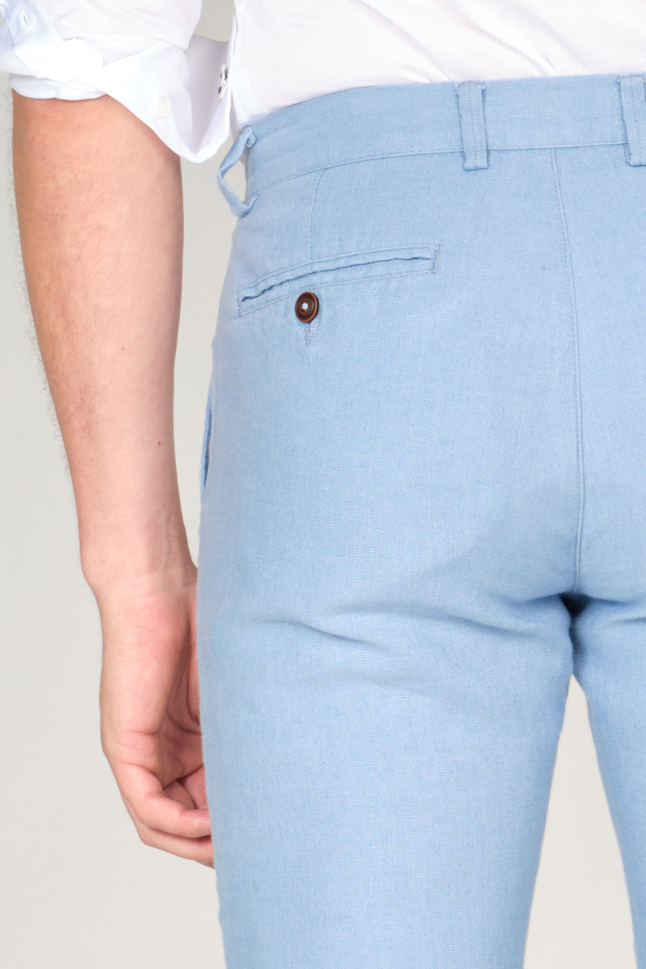 PANTALÓN 100% LINO – CORTE CLASSIC FIT – DOS BOLSILLOS LATERALES – DOS BOLSILLOS DOBLE RIBETE CON BOTÓN EN LA PARTE POSTERIOR