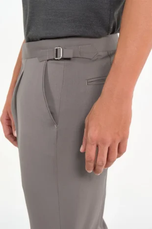 Pantalón Formal Pinzado. 100% Lana. Classic Fit. Diseño Pretina Cruzada con botón. Bolsillos Delanteros Diagonales. Bolsillos Traseros Doble Ribete con botón. Bota con Doblez.
