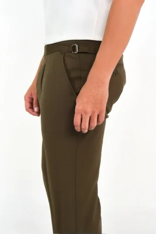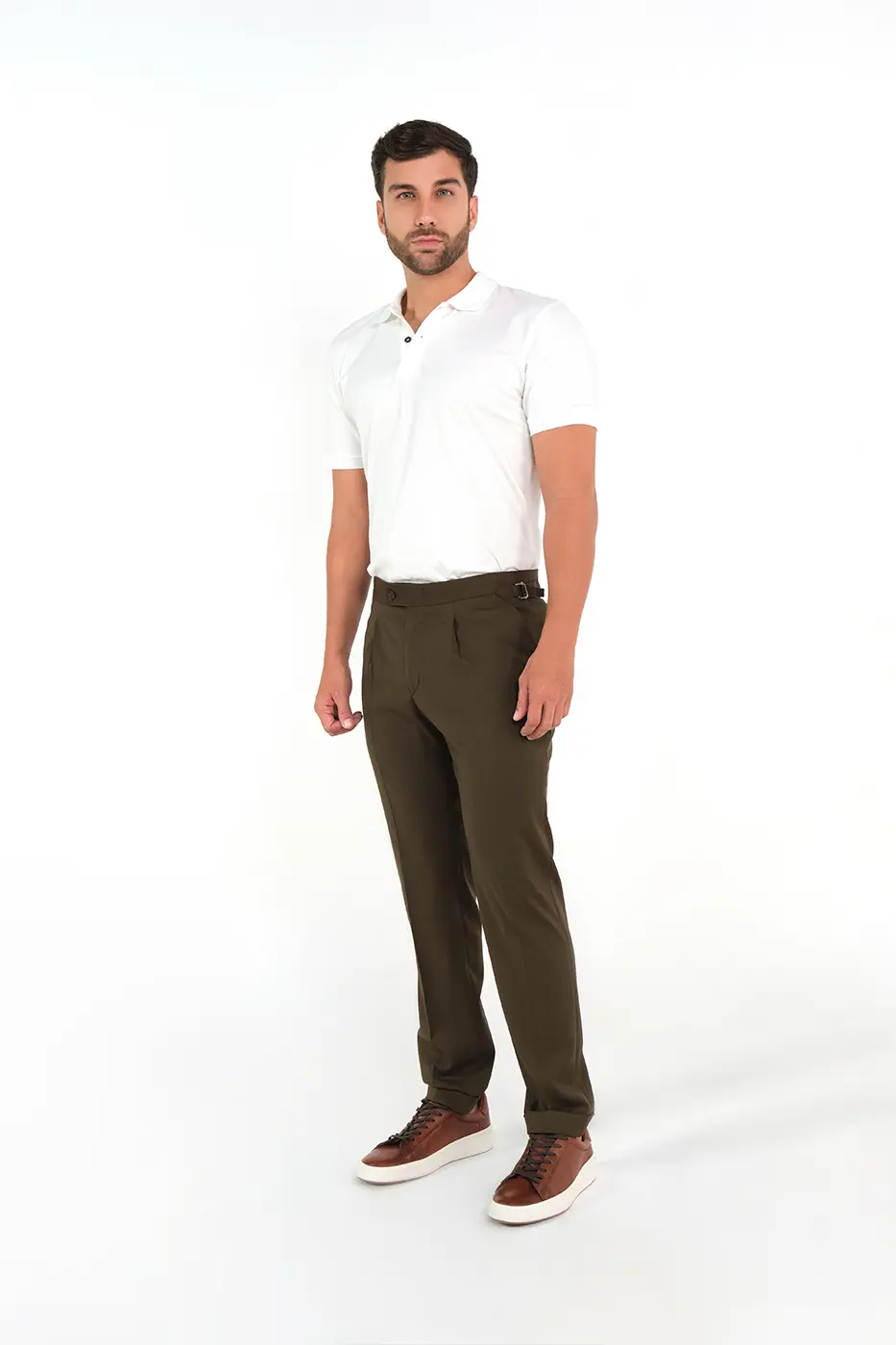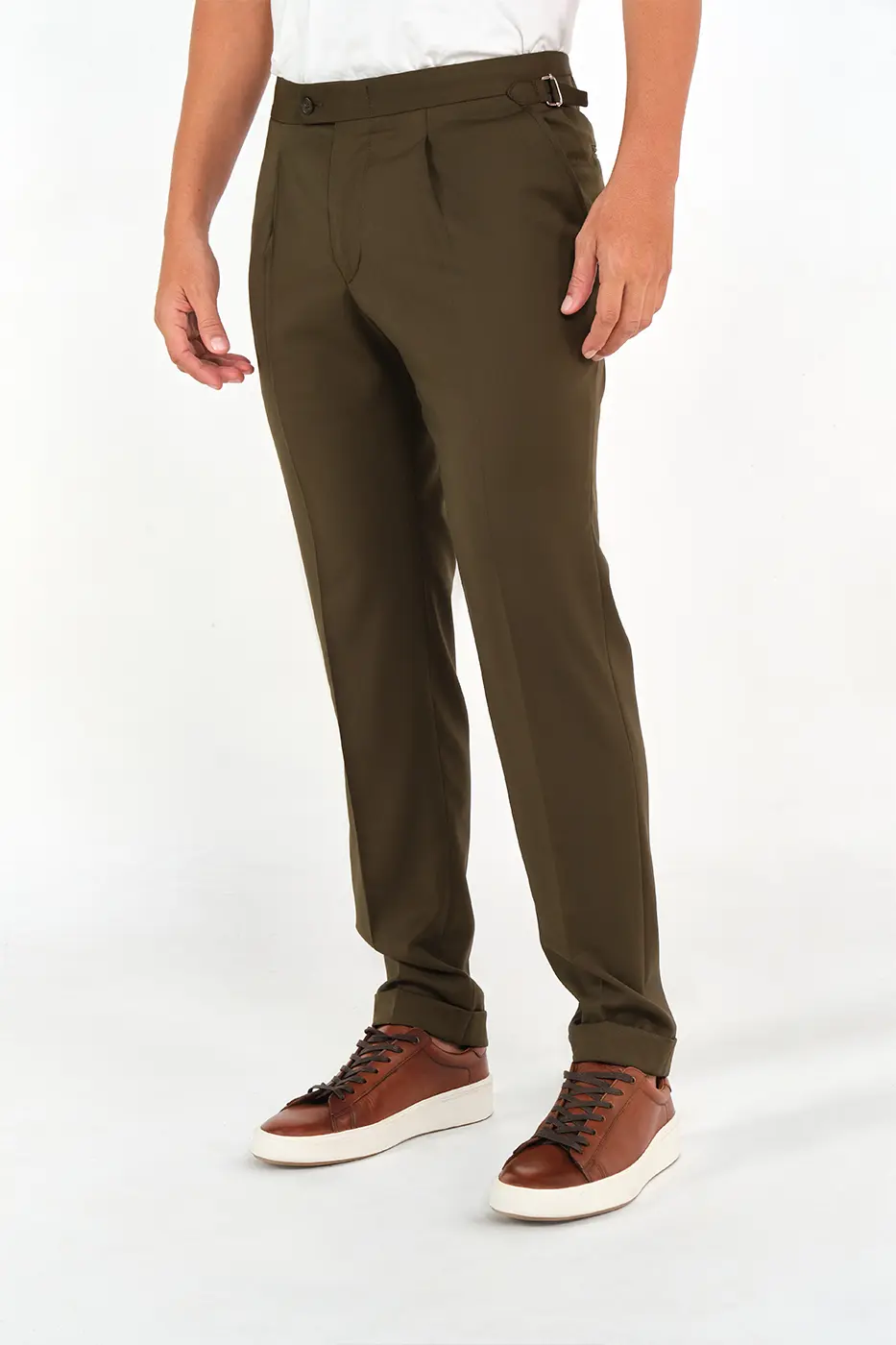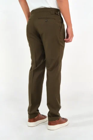 Pantalón Gabardina Classic Fit 100% Lana Verde Militar