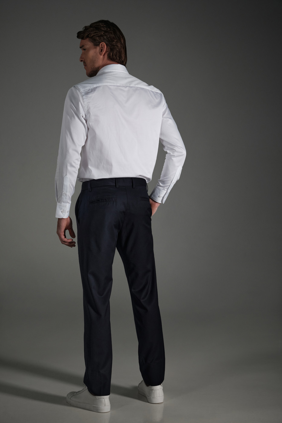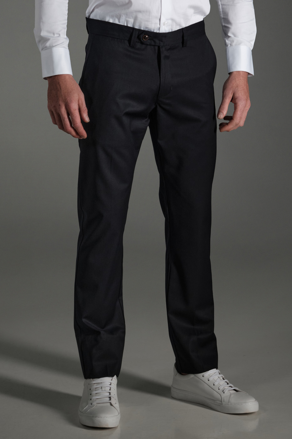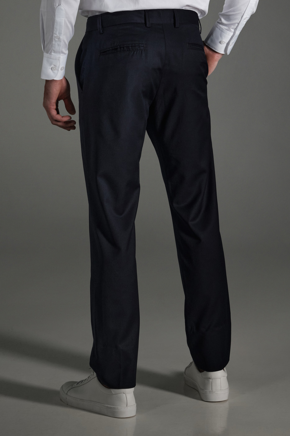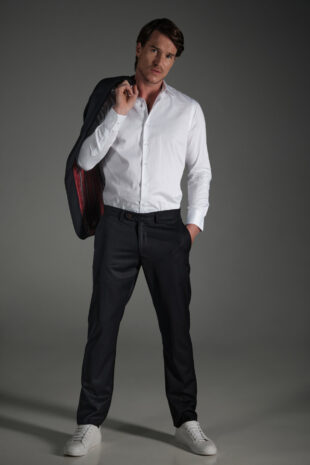 PANTALÓN 100% LANA – CORTE SLIM FIT – DISEÑO PRETINA CRUZADA – DOS BOLSILLOS LATERALES – DOS BOLSILLOS DOBLE RIBETE EN LA PARTE POSTERIOR