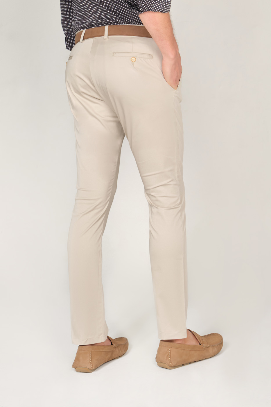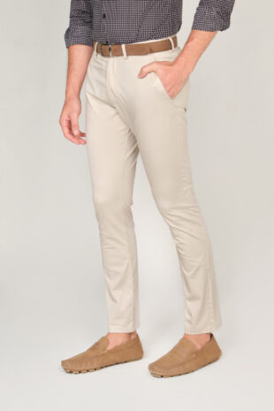 PANTALÓN 100% ALGODÓN TWILL – TEJIDO LIJERAMENTE ELASTICO – CORTE SLIM FIT – DOS BOLSILLOS LATERALES – DOS BOLSILLOS DOBLE RIBETE CON BOTÓN EN LA PARTE POSTERIOR