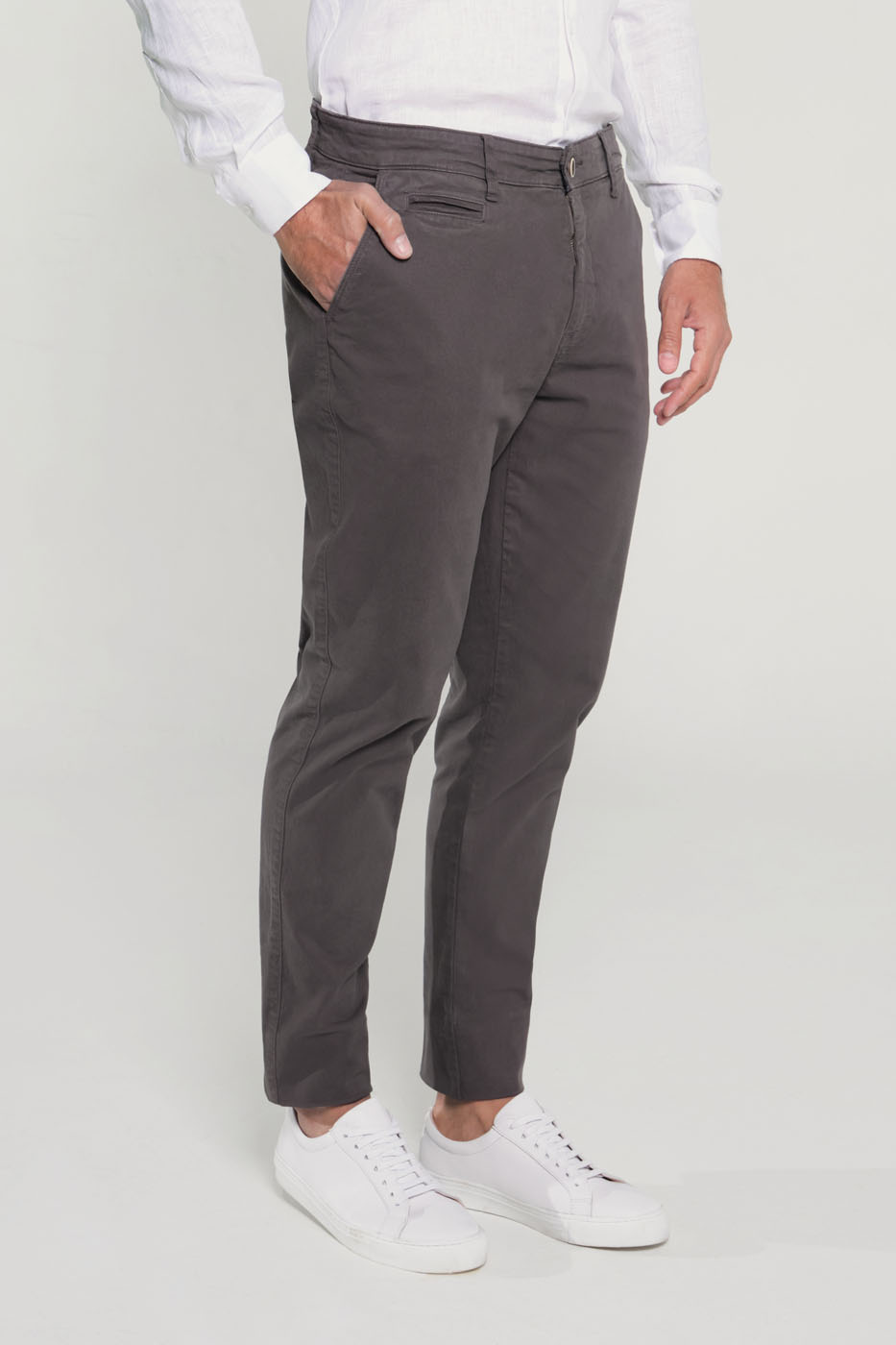 Pantalón 100% Algodón Twill – Tejido Lijeramente Elastico – Dos Bolsillos Laterales – Dos Bolsillos De Ojal Abotonado En La Parte Posterior