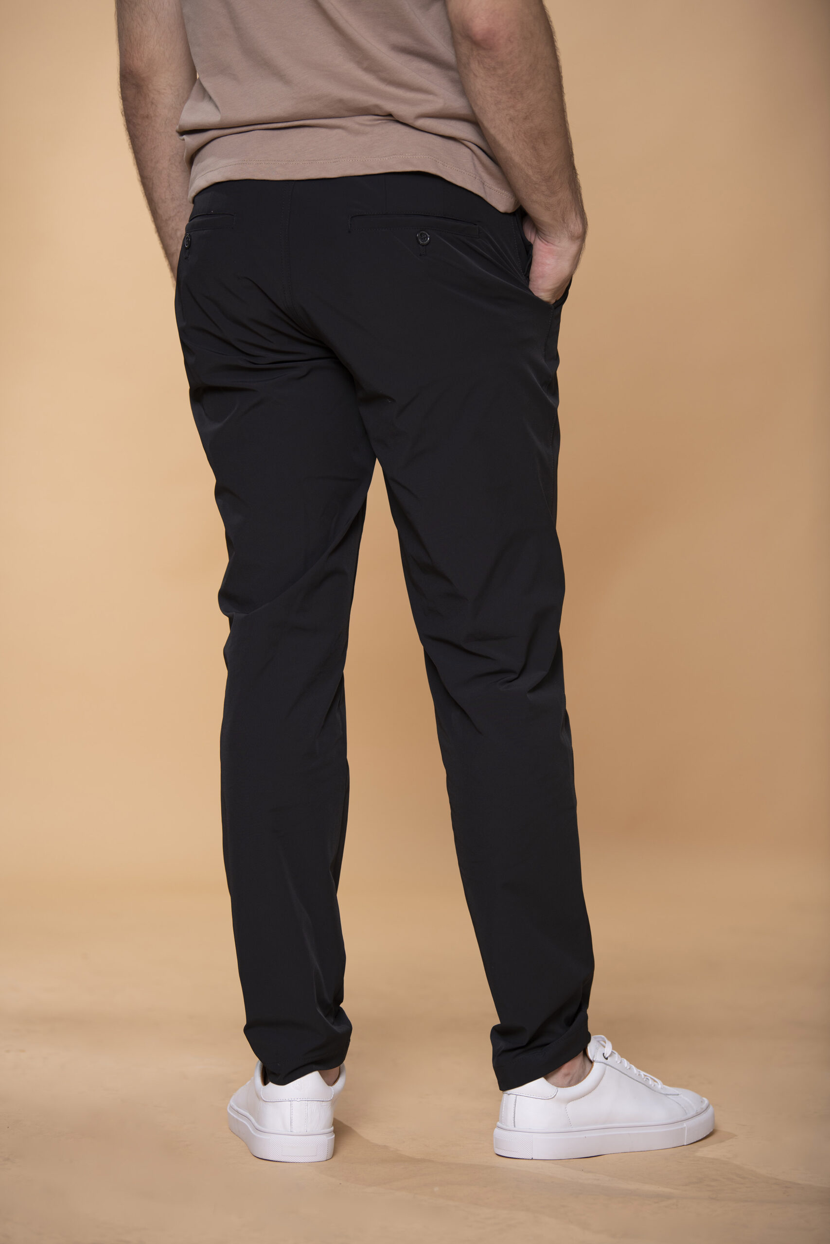 Pantalón confeccionado en tejido strech con mezcla de nylon. Pantalón Slim fit: este fit presenta una silueta ligeramente ajustada al cuerpo, ceñida en la cintura y las piernas. Cintura con pasadores. Cierre frontal por cremallera y botón. Bolsillos delanteros diagonales. Bolsillos ribete con botón en la parte posterior.