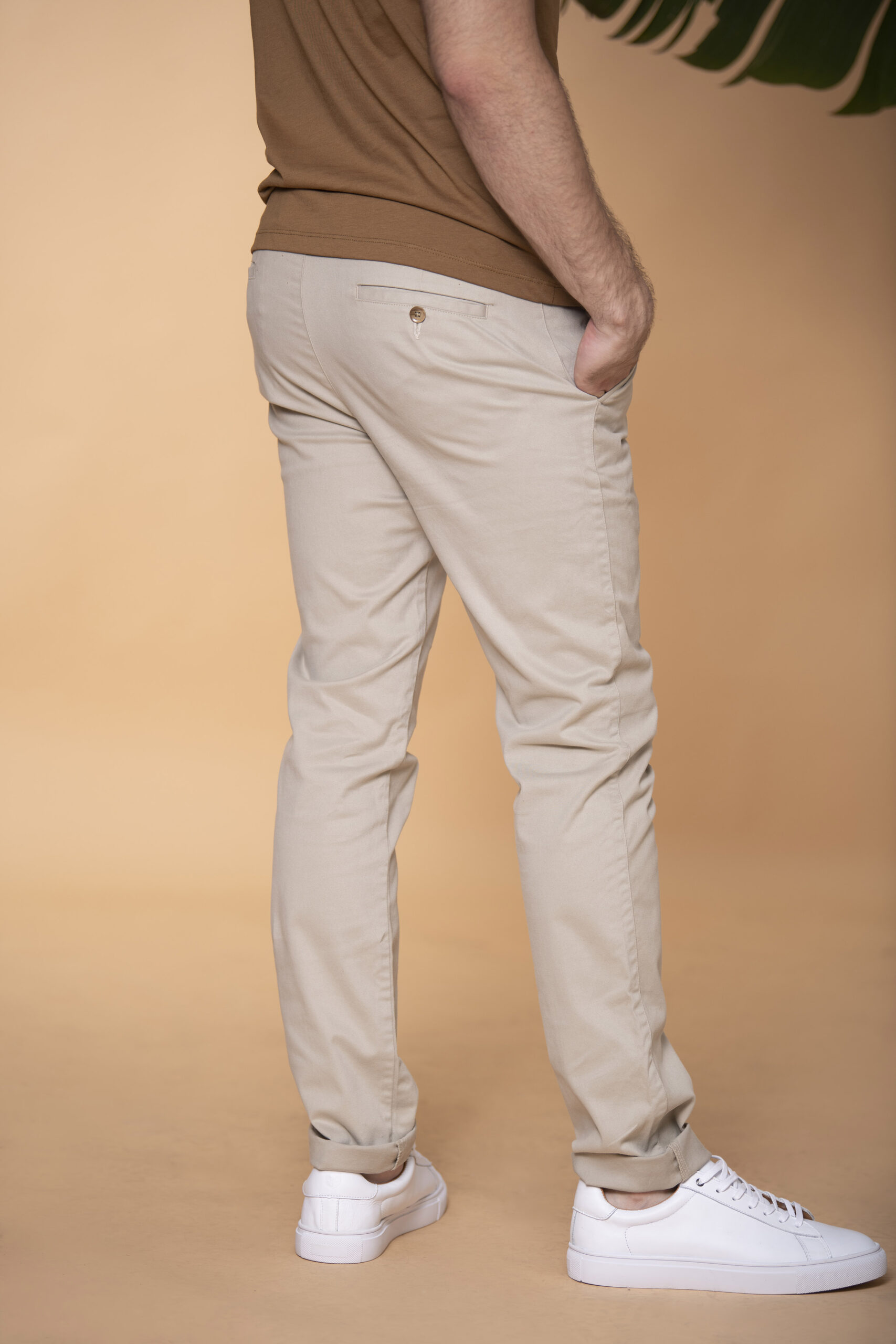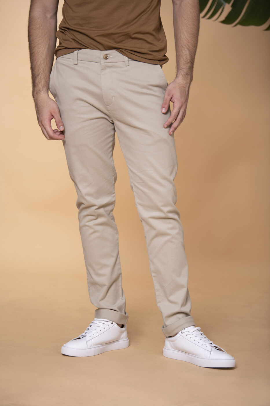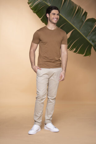 Pantalón confeccionado en tejido con mezcla de algodón. Pantalón Slim fit: este fit presenta una silueta ligeramente ajustada al cuerpo, ceñida en la cintura y las piernas. Cintura con pasadores. Cierre frontal por cremallera y botón. Bolsillos delanteros diagonales. Bolsillos ribete con botón en la parte posterior.