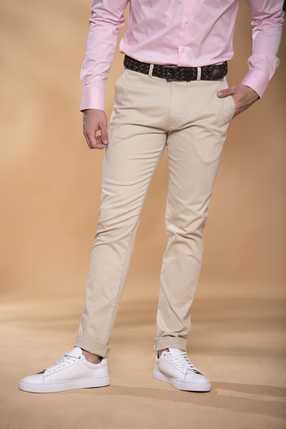 Pantalón confeccionado en tejido con mezcla de algodón. Pantalón Slim fit: este fit presenta una silueta ligeramente ajustada al cuerpo, ceñida en la cintura y las piernas. Cintura con pasadores. Cierre frontal por cremallera y botón. Bolsillos delanteros diagonales. Bolsillos ribete con botón en la parte posterior.