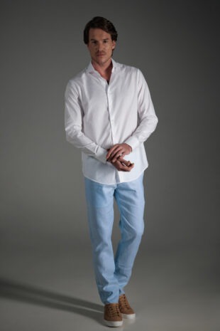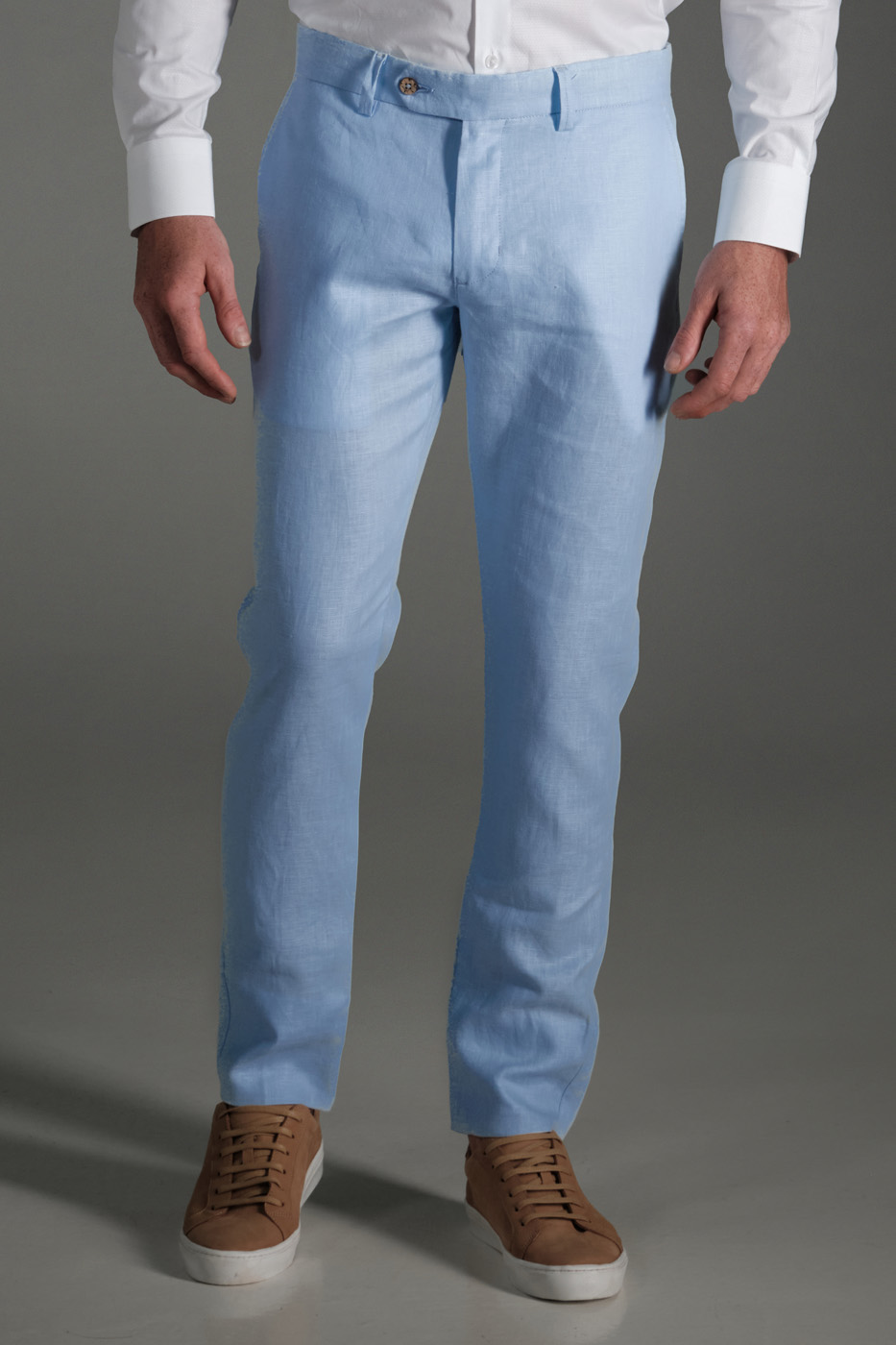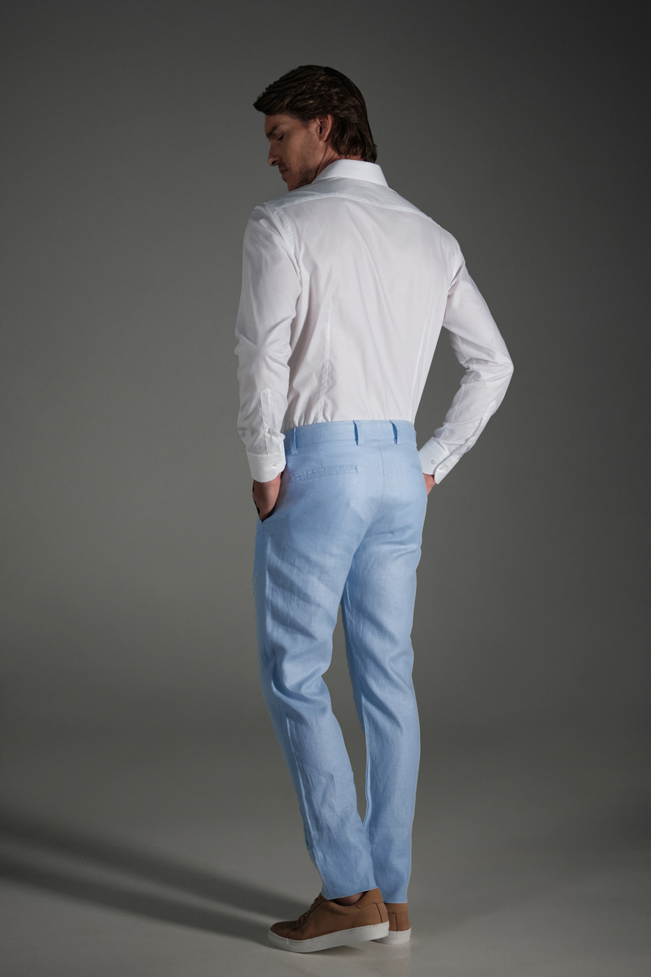 Pantalón 100% Lino – Corte Slim Fit – Diseño Pretina Cruzada – Dos Bolsillos Laterales – Dos Bolsillos Doble Ribete En La Parte Posterior