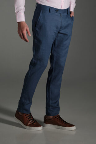 Pantalon Slim Lino Azul Medio