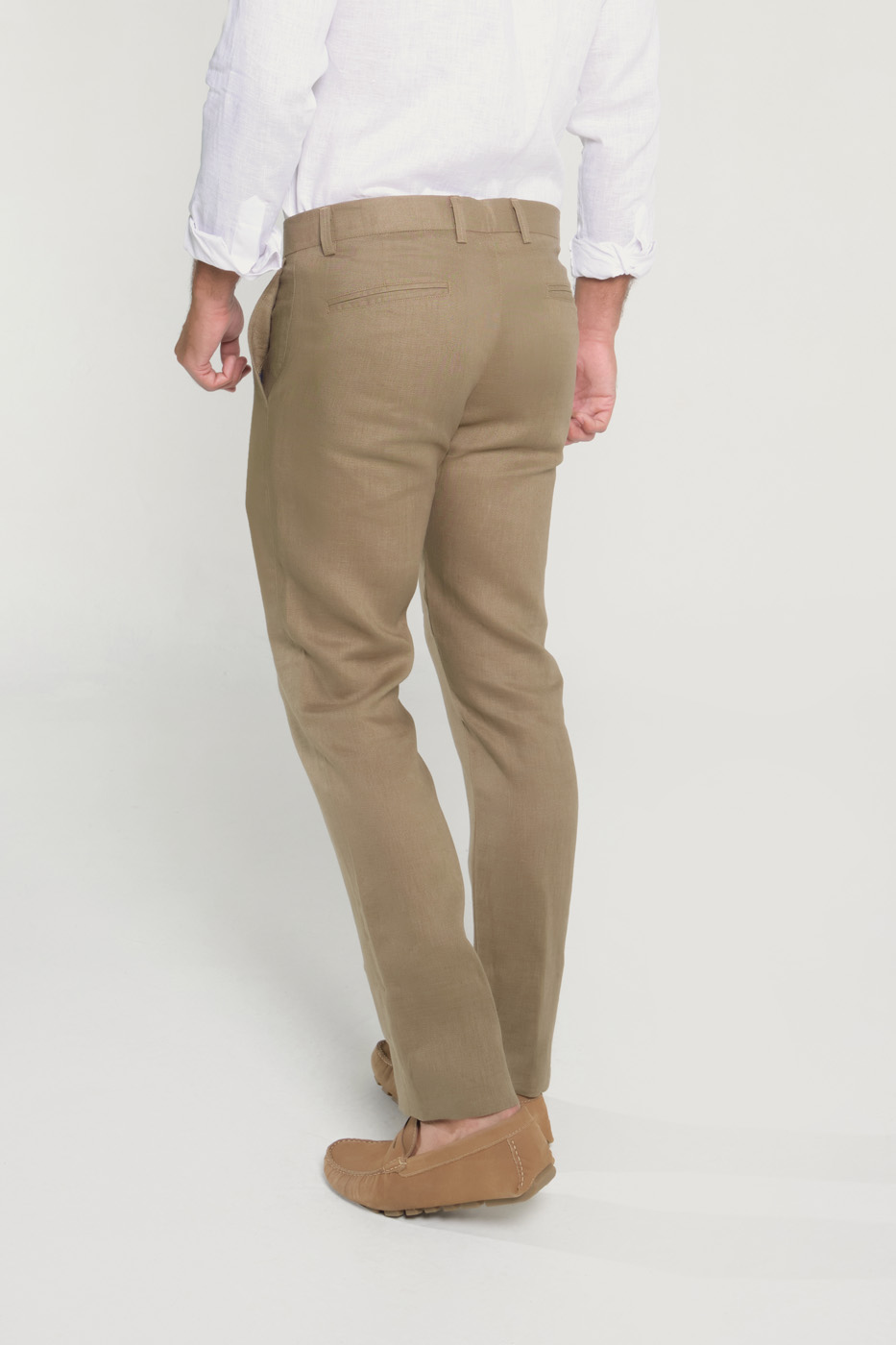 Pantalón 100% Lino – Corte Slim Fit – Diseño Pretina Cruzada – Dos Bolsillos Laterales – Dos Bolsillos Doble Ribete En La Parte Posterior