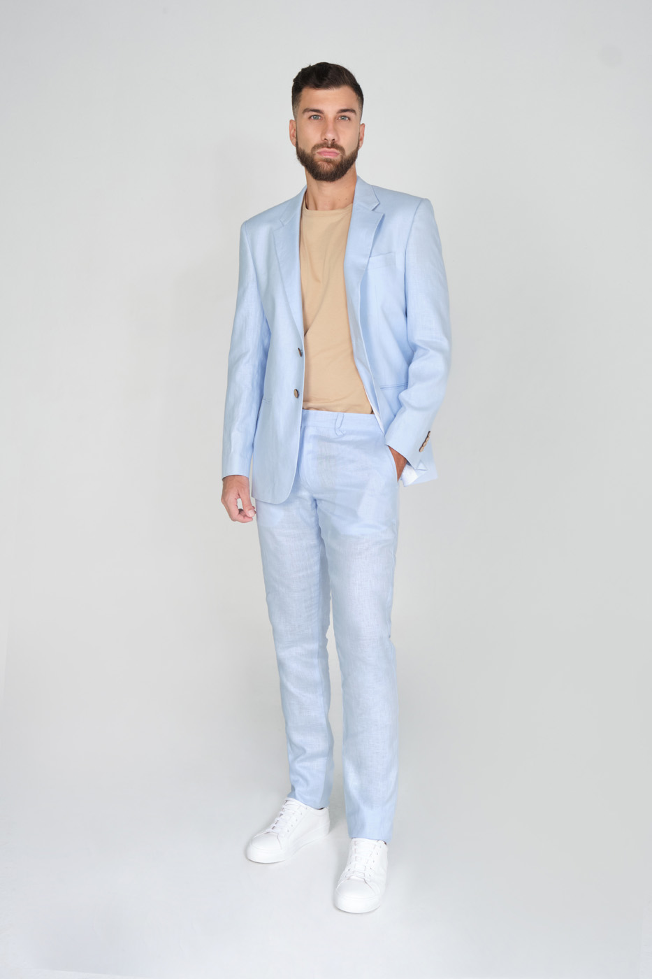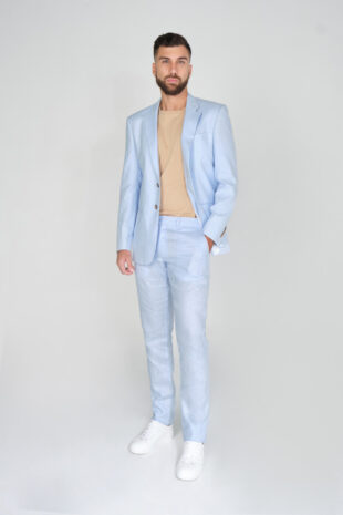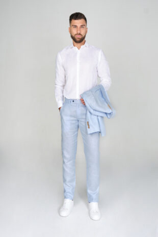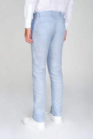Pantalón Traje Slim Fit 100% Lino Azul Claro