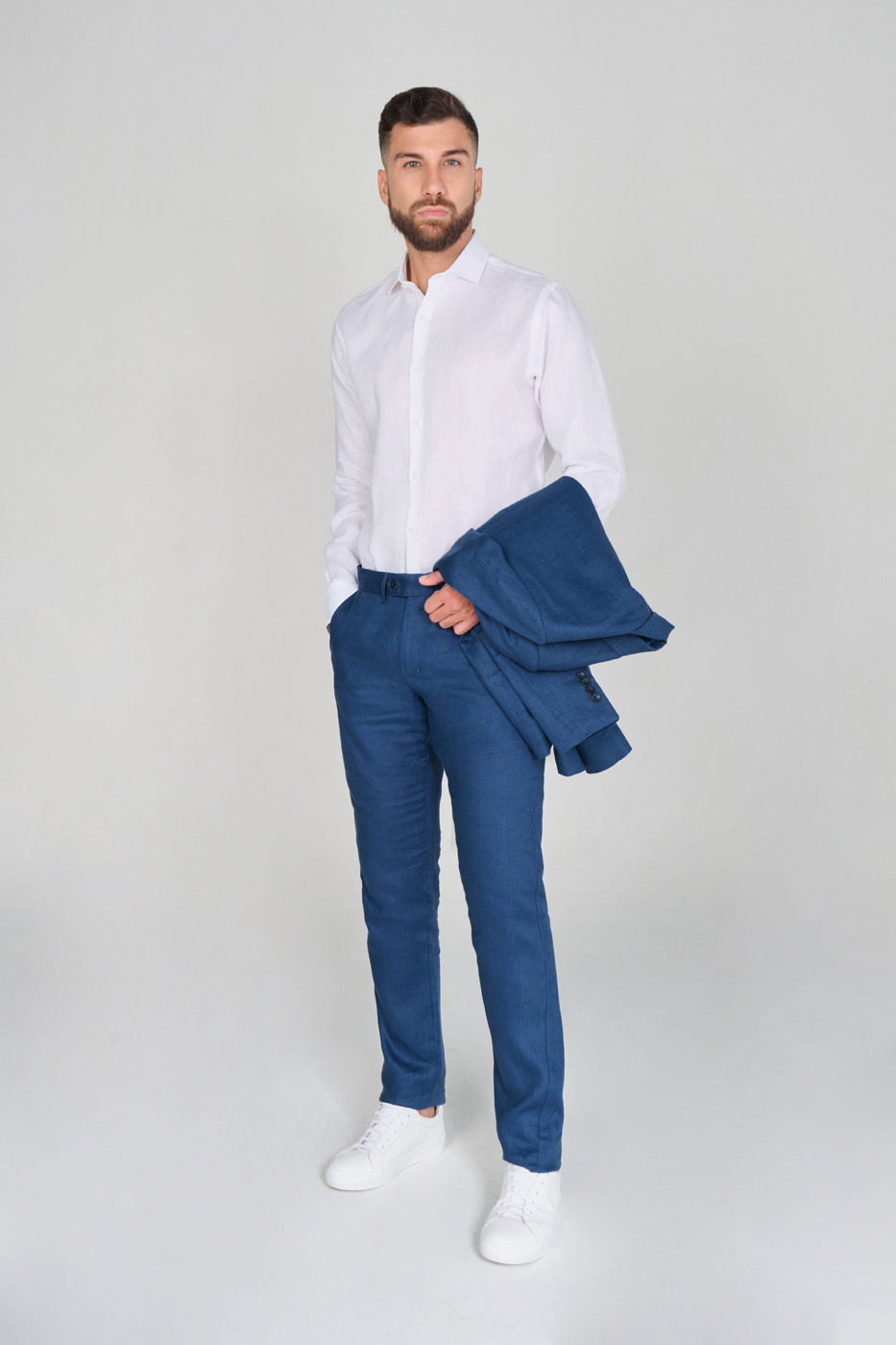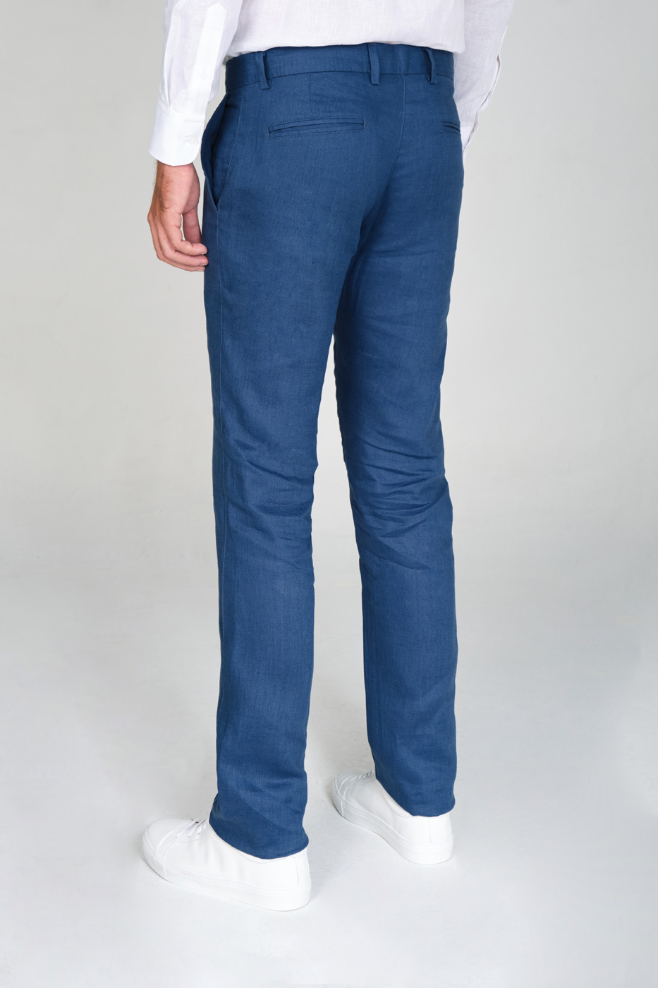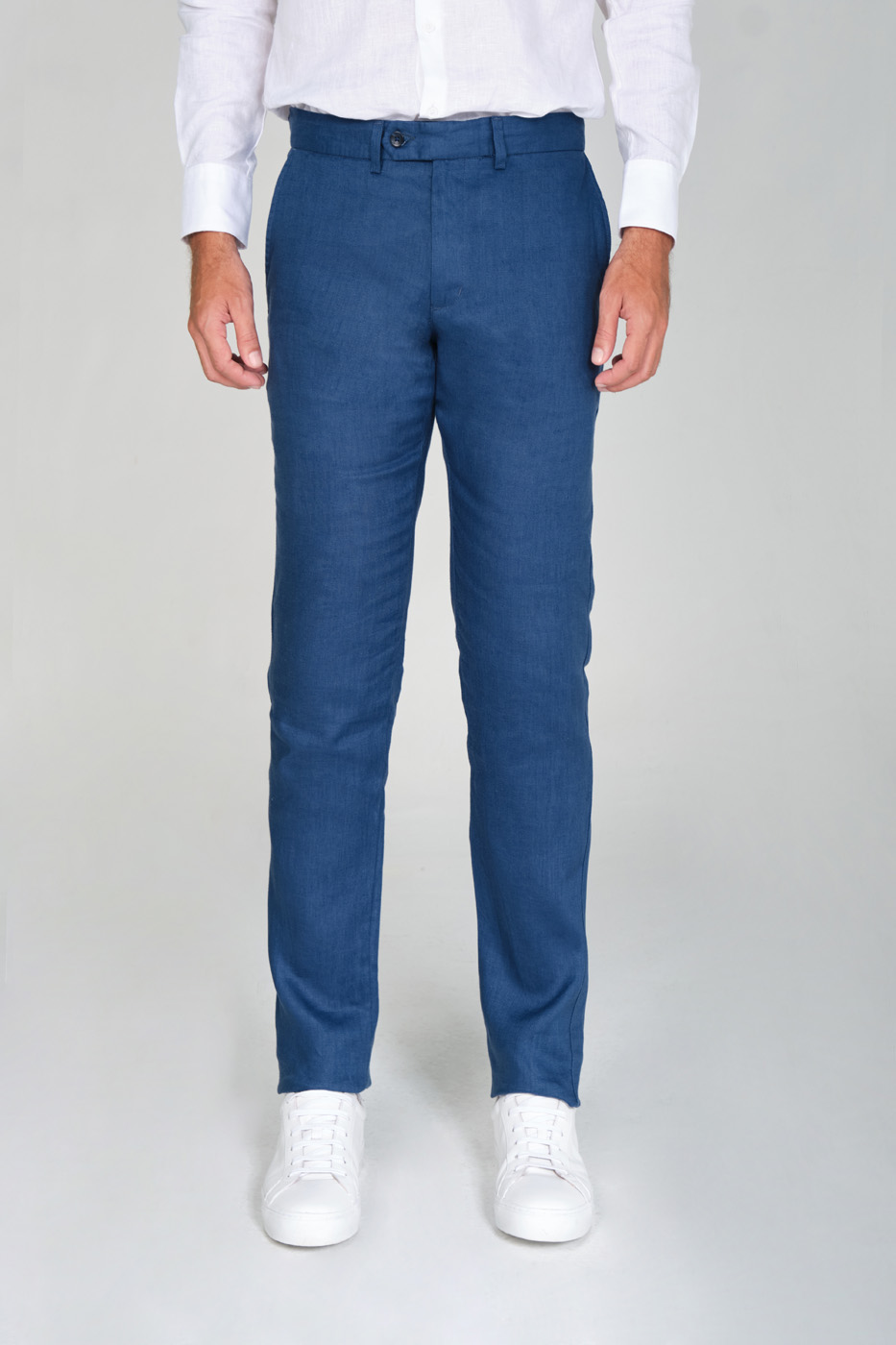 Pantalón Formal. 100% Lino. Slim Fit. Diseño Pretina Cruzada Con Botón y Pasadores. Bolsillos Delanteros Diagonales. Bolsillos Traseros Doble Ribetes.