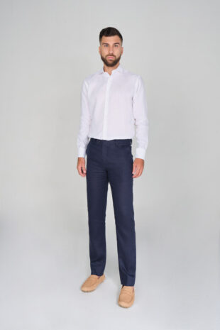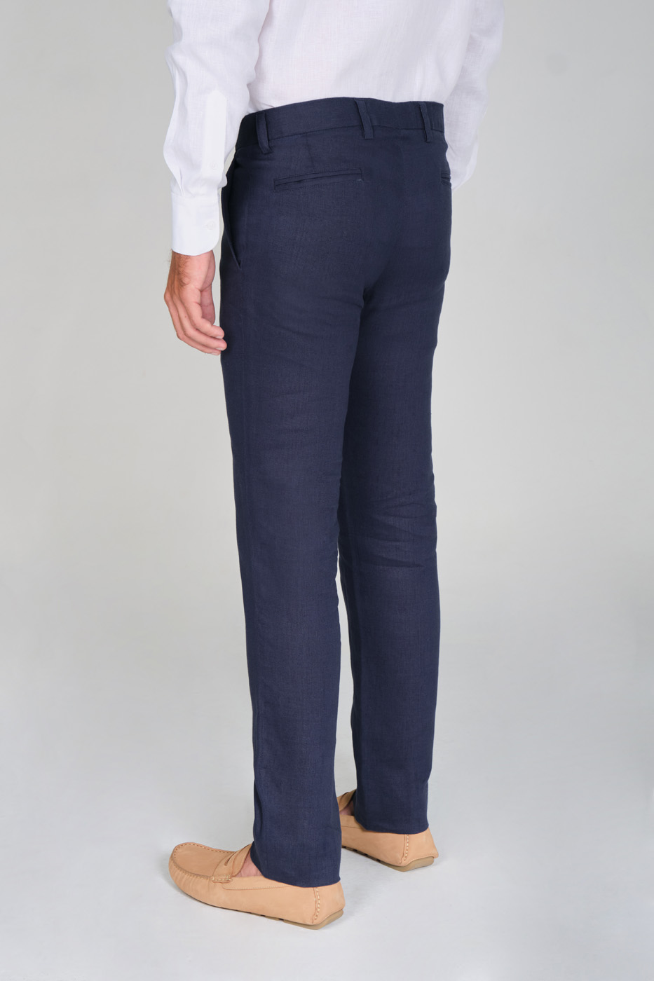 Pantalón Formal. 100% Lino. Slim Fit. Diseño Pretina Cruzada Con Botón y Pasadores. Bolsillos Delanteros Diagonales. Bolsillos Traseros Doble Ribetes.