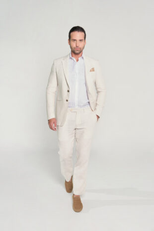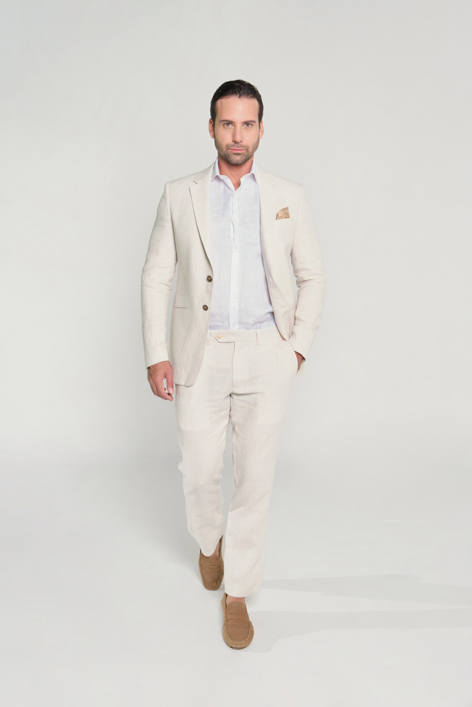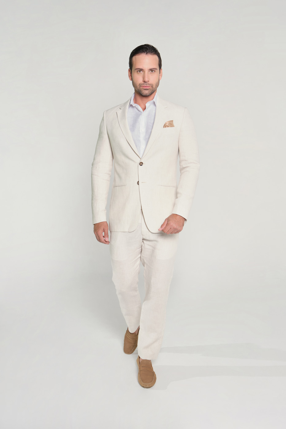 Chaqueta 100% Lino – Corte Slim Fit – Diseño Solapa Clasica – Bolsillos Delanteros Doble Ribete – Dos Botones – Una Abertura.