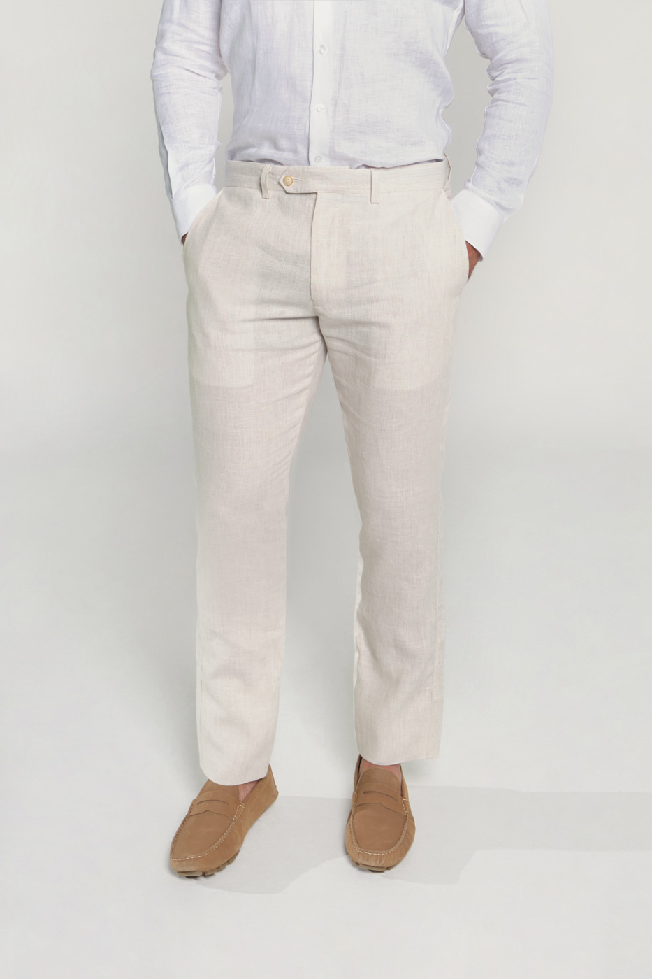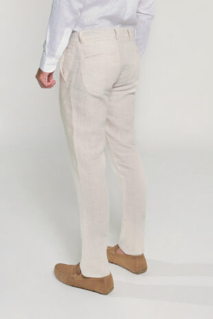 Pantalón 100% Lino – Corte Slim Fit – Diseño Pretina Cruzada – Dos Bolsillos Laterales – Dos Bolsillos Doble Ribete En La Parte Posterior