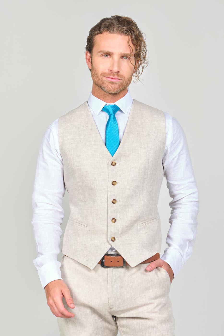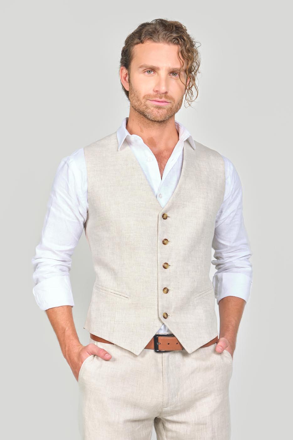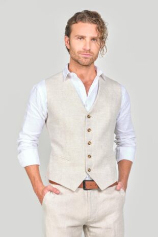 100% Lino Slim Fit – 2 Botones – Bolsillo Doble Ribete – Chaleco 5 Botones