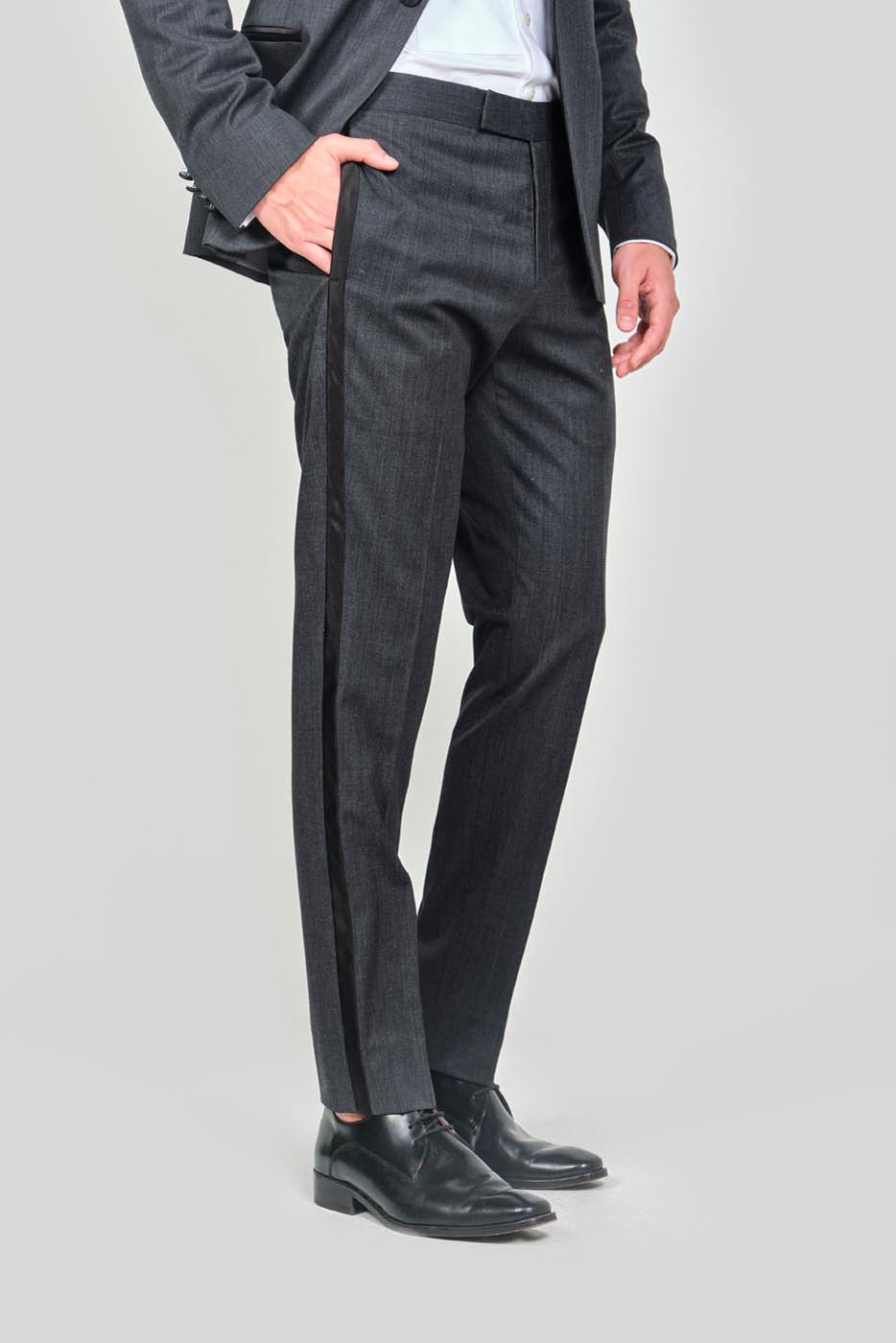 100% Paño Tropical – Chaqueta: 1 Boton – Bolsillos Doble Ribete – Pantalon: Pretina Cruzada – Bolsillos Rectos – Galon Satin Negro En El Costado Accesorios: Botonadura – Corbatin Negro – Pañuelo Blanco