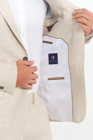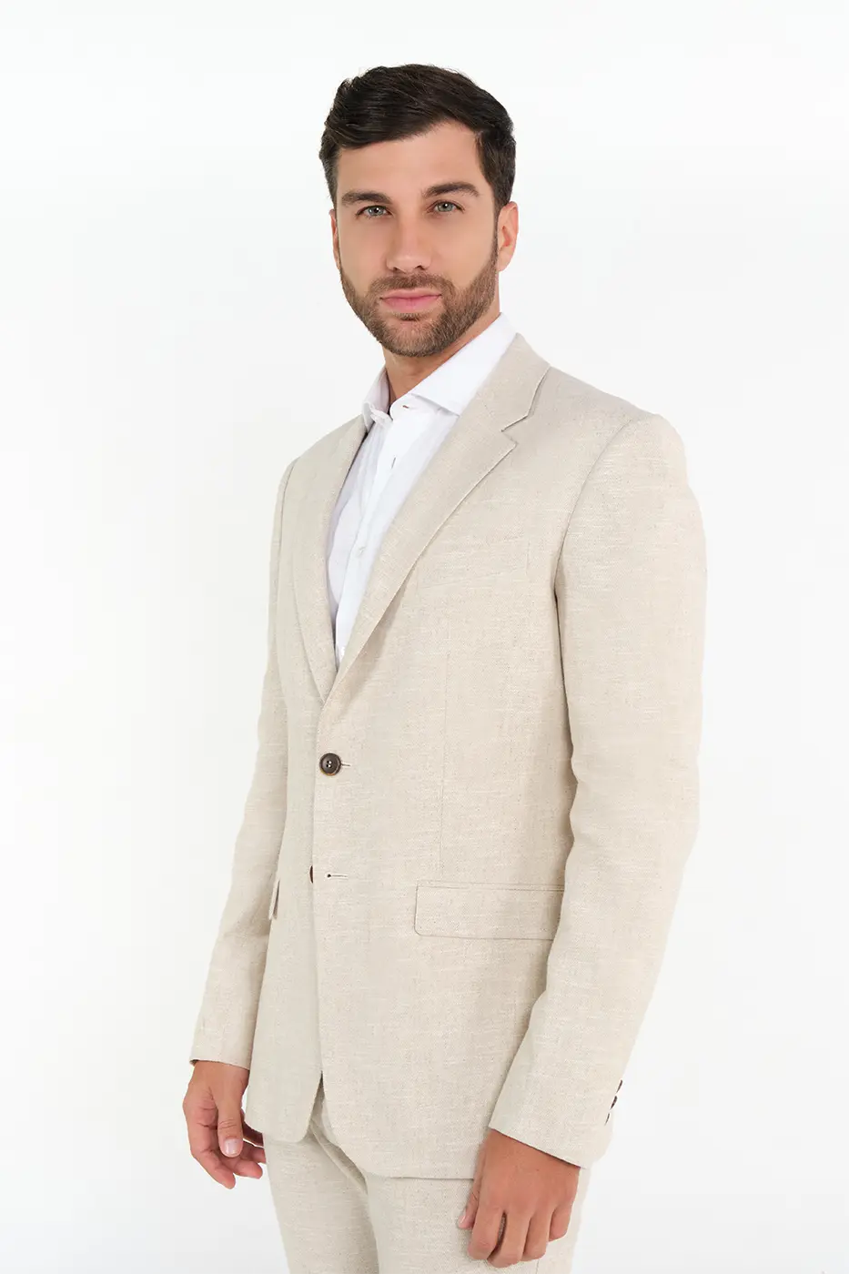 Chaqueta Formal. 100% Lino. Slim Fit. Diseño Solapa Clásica. Bolsillos Delanteros Tapas. Dos Botones Delanteros. 1 Abertura.