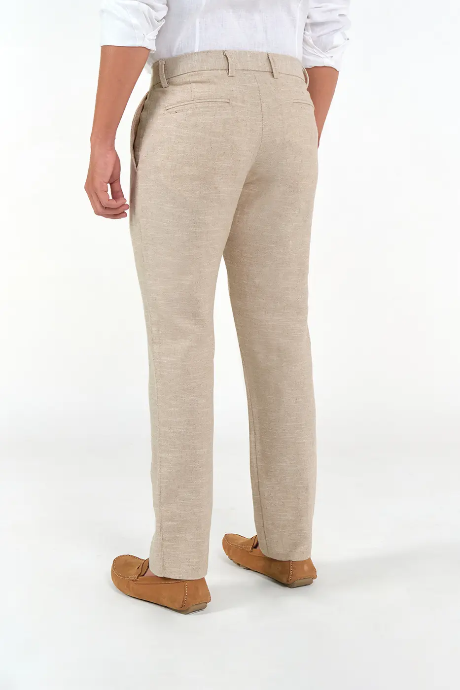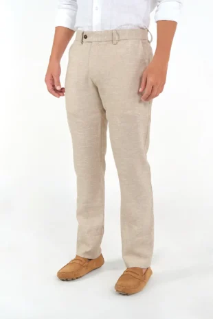 Pantalón Formal. 100% Lino. Slim Fit. Diseño Pretina Cruzada Con Botón y Pasadores. Bolsillos Delanteros Diagonales. Bolsillos Traseros Doble Ribete.